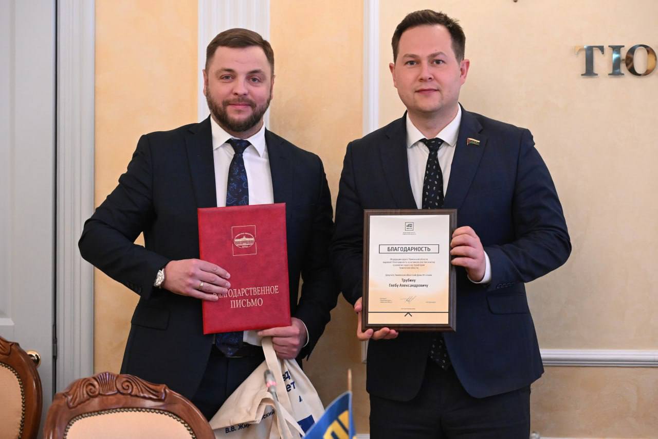 В ходе заседания депутаты вручили благодарственные письма и почетные грамоты Тюменской областной Думы сотрудникам и общественным деятелям, отметившимся значительным вкладом в развитие региона и поддержку законодательной деятельности.