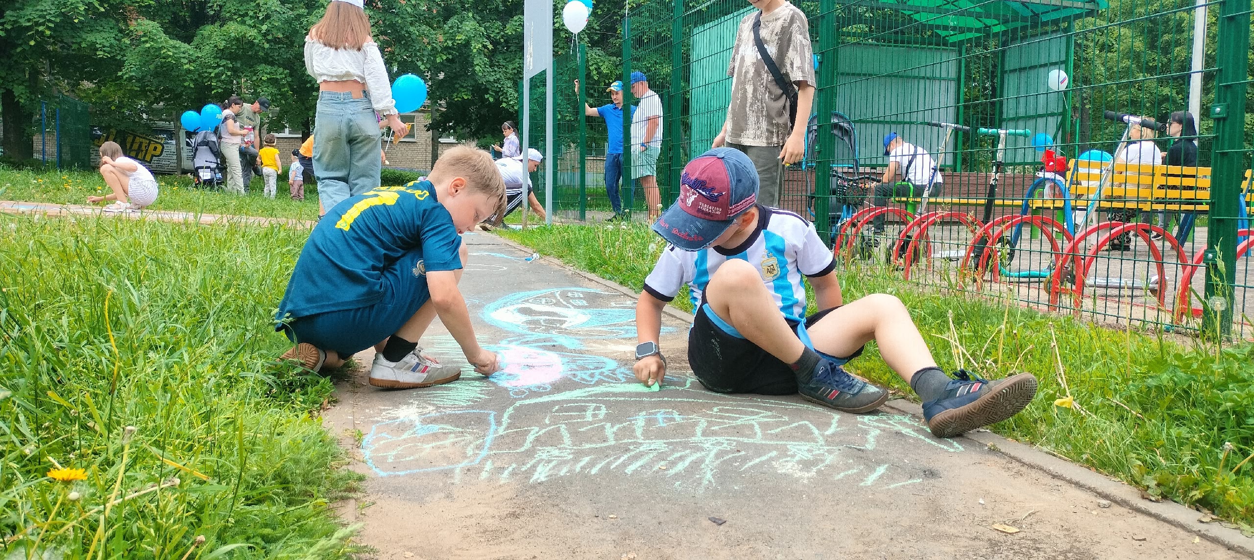 Одним из главных событий стал конкурс рисунков на асфальте. Маленькие художники с увлечением рисовали свои фантазии: солнце, цветы, любимых персонажей и, конечно, счастливое детство.