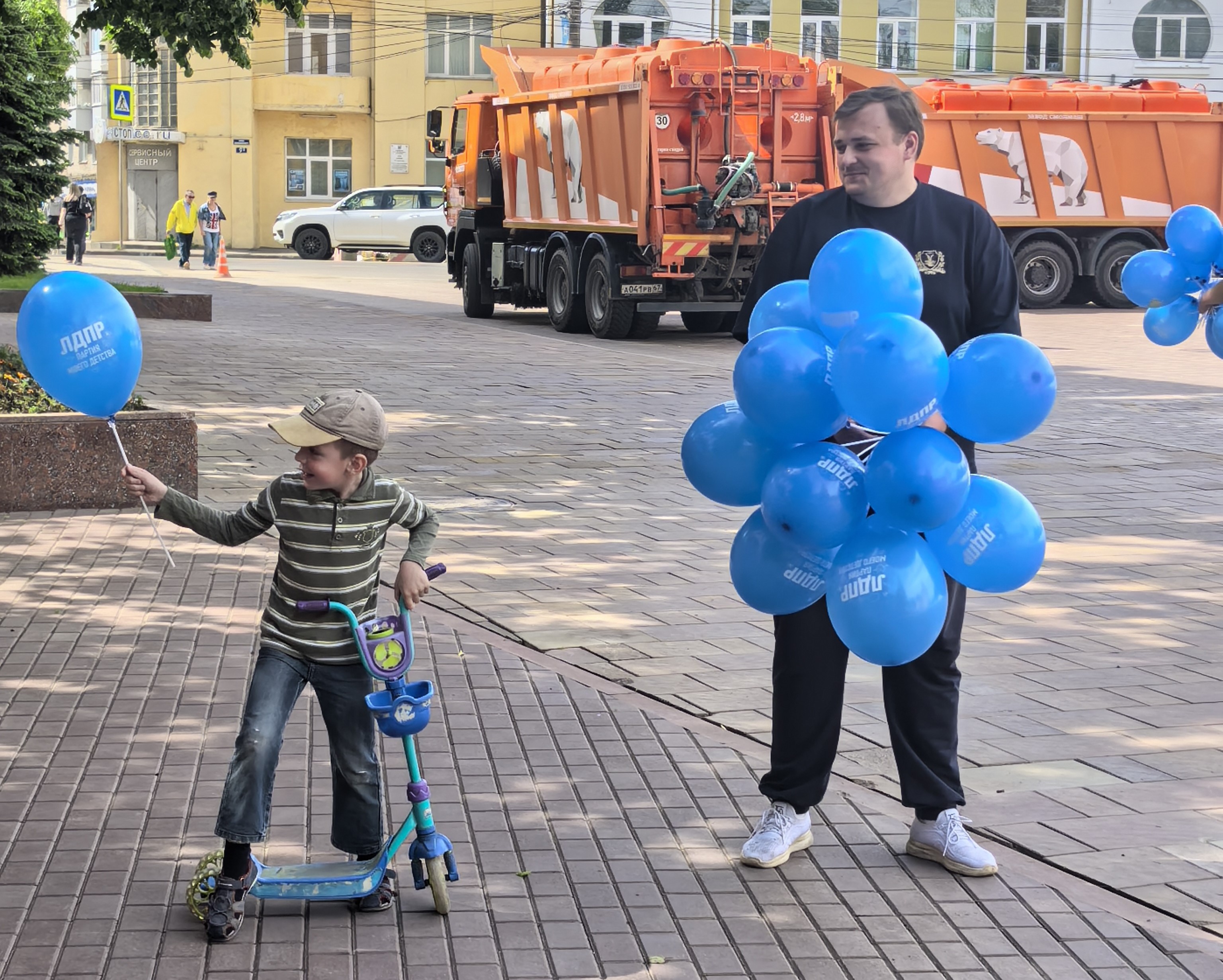 Заместитель руководителя ЛДПР на Смоленщине Владислав Ульянов вместе с участниками партпроекта "ЛДПР.СТАРТ" вышел на улицы Смоленска, чтобы поздравить маленьких горожан и их родителей с Днем защиты детей