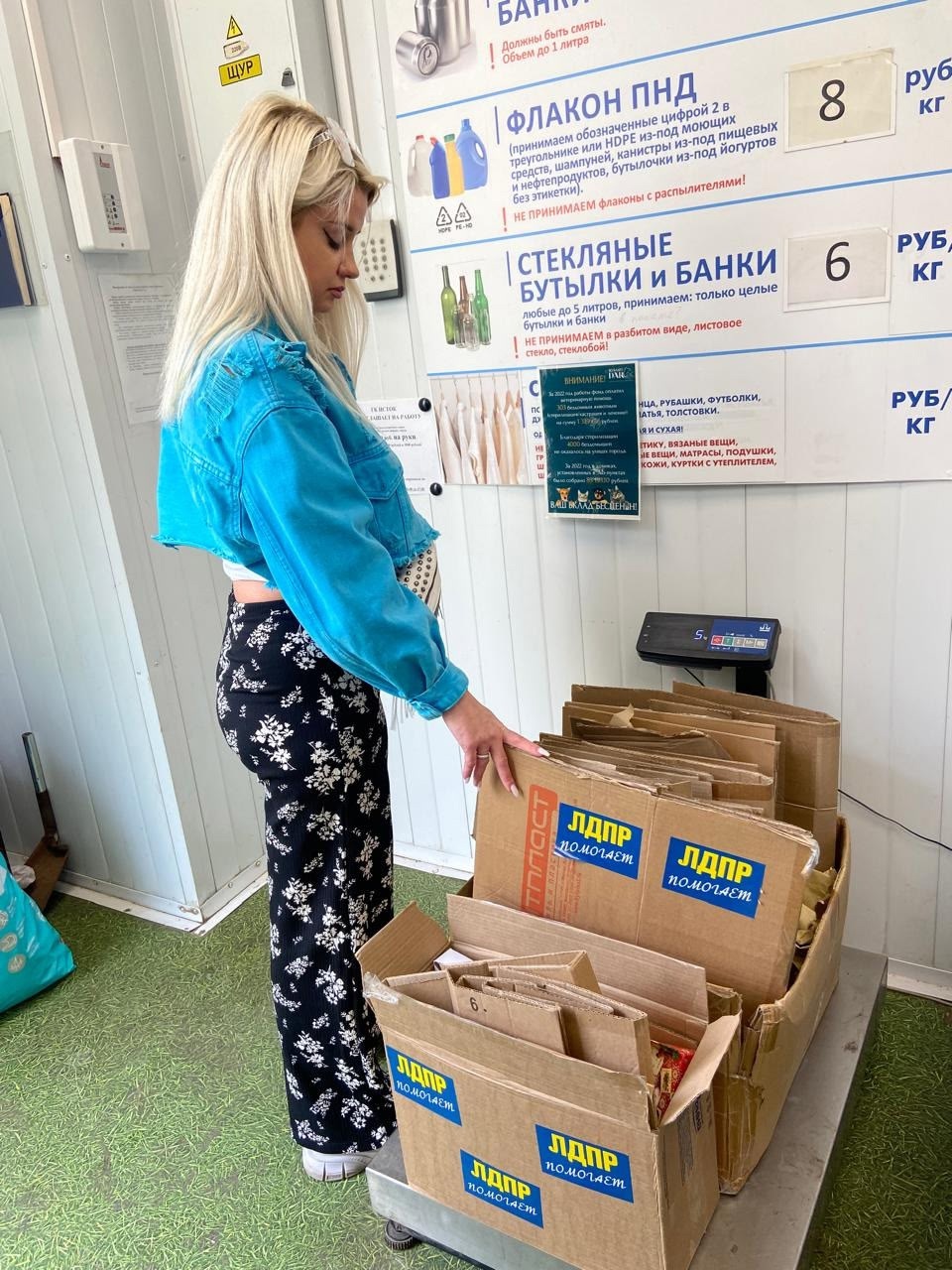 Представители ЛДПР сдают макулатуру на переработку