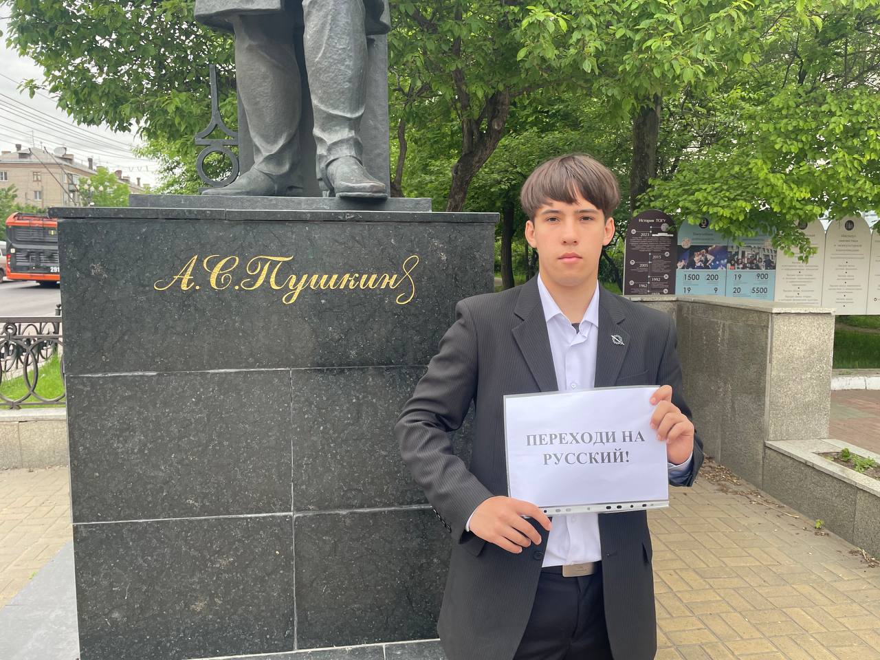 Сегодня активисты молодежной организации ЛДПР в Хабаровске почтили память великого поэта — у памятника Александру Сергеевичу Пушкину прозвучали его стихи, как символ любви к родному слову. Один из наших активистов вышел на одиночный пикет с простым, но сильным посланием — переходить на русский, сохранять и защищать его.