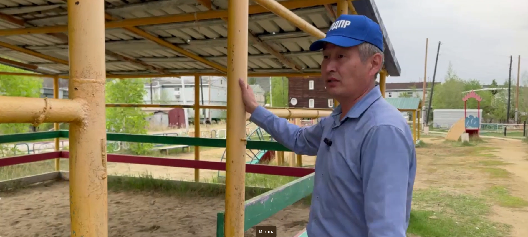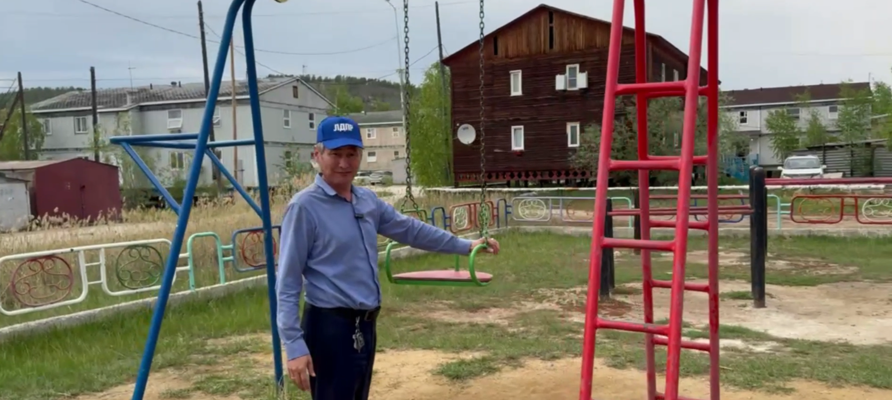 "Сейчас мы в Сайсарском округе, в микрорайоне Борисовка-1. Как видите, территория большая, но устарела и физически, и морально. Так строить давно уже недопустимо. Вход небезопасен: дети могут наткнуться на торчащие прутья и бетонные элементы. Металлический каркас с железными краями очень травмоопасен. Неудивительно, что детей здесь нет. Детская горка в ужасном состоянии. Её можно было бы хотя бы немного подправить и покрасить. Песочница в плачевном состоянии, песка нет, вид непрезентабельный. Местная якутская разработка – качели – явно не для взрослых. При росте 183 см я не могу на них покачаться. На футбольном поле из земли торчат пеньки. Какие тут могут быть игры? Это очень опасно и чревато травмами", – подчеркнул активист и помощник координатора Якутского отделения ЛДПР Петр Третьяков.