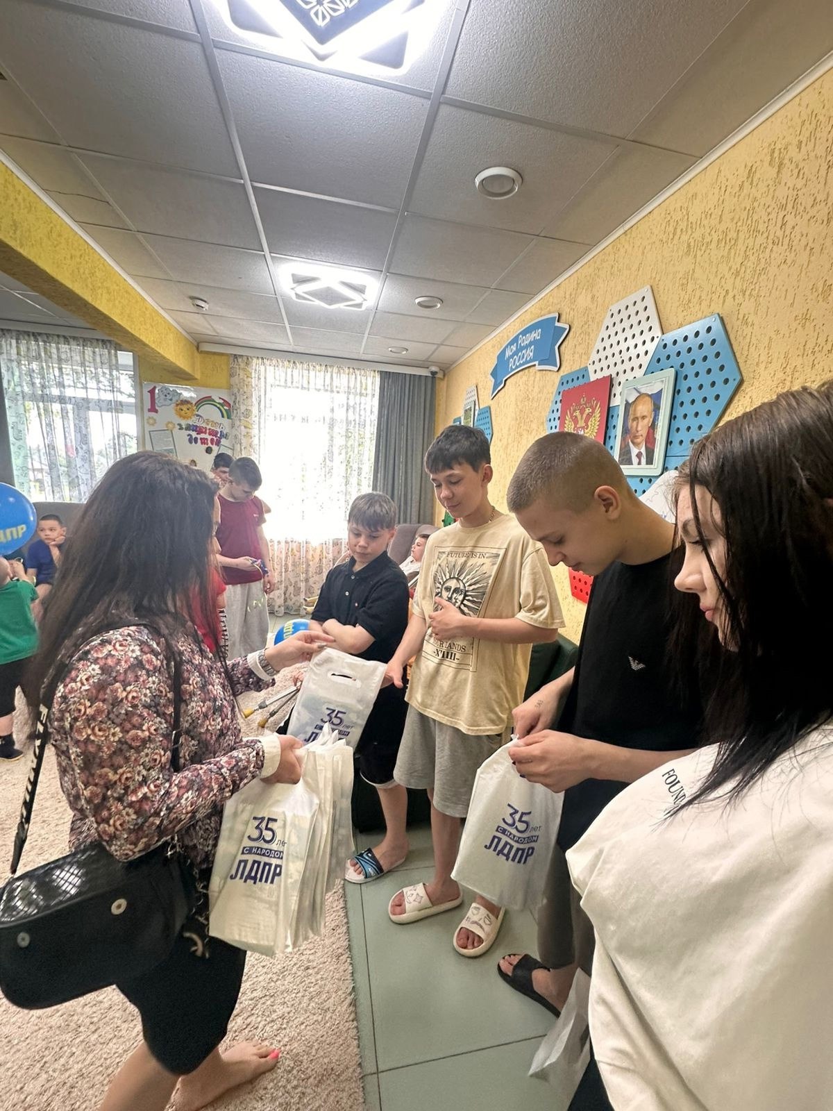 Координаторы тюменских первичных городских отделений ЛДПР Сергей Попов и Мария Зайковская поблагодарили сотрудников за добросовестный труд реабилитационного центра для несовершеннолетних «Семья», поздравили с профессиональным праздником и вручили подарки от ЛДПР