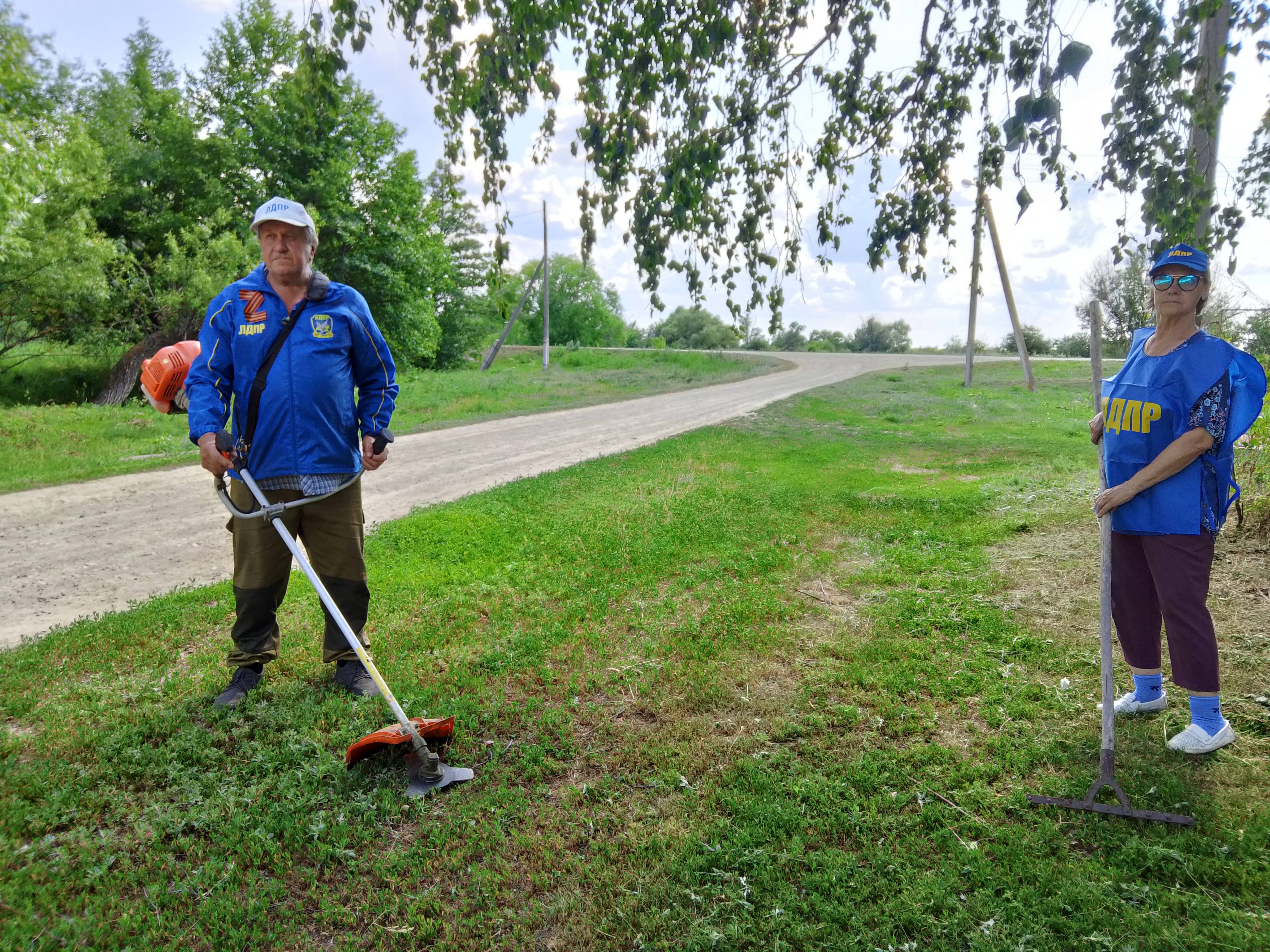 В этот раз партийцы снова объединились и навели порядок на придомовых территориях улицы Заречной села Большая Дмитриевка, а также покосили траву и убрали сорняки на берегу реки Латрык.