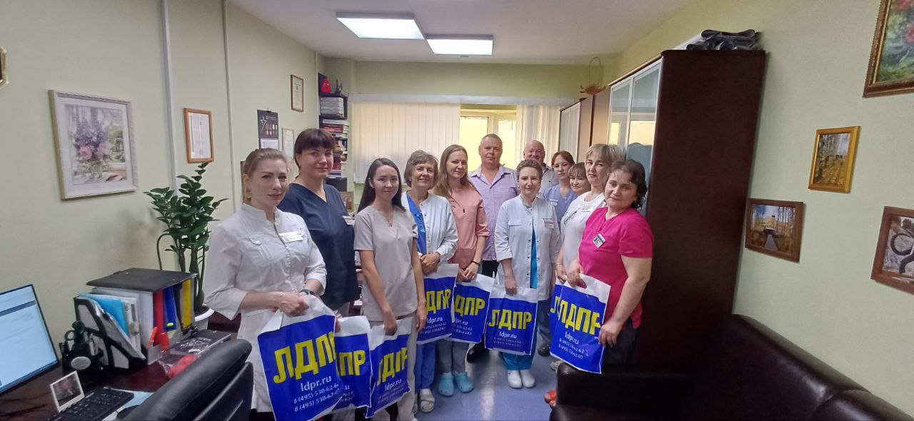 Сегодня координатор местного отделения Александр Почуев и помощник депутата Государственной Думы Андрей Екимов и активист ЛДПР Никита Асеев пришли поздравить с наступающими праздниками Дня медицинского работника и Всемирного дня донора крови, который отмечается в России и во всем мире с 2004 года, когда впервые на Женевской ассамблее ВОЗ был утвержден этот праздник и признан международным.