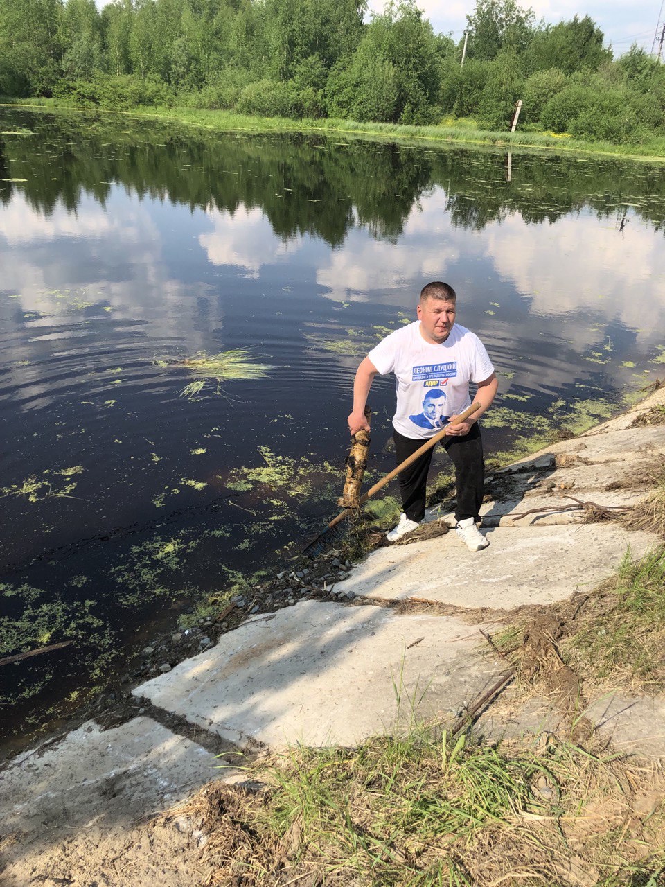 Координатор Советского местного отделения и депутат ЛДПР Игорь Таушканов принял активное участие в акции по очистке пруда в гп. Коммунистический Советского района