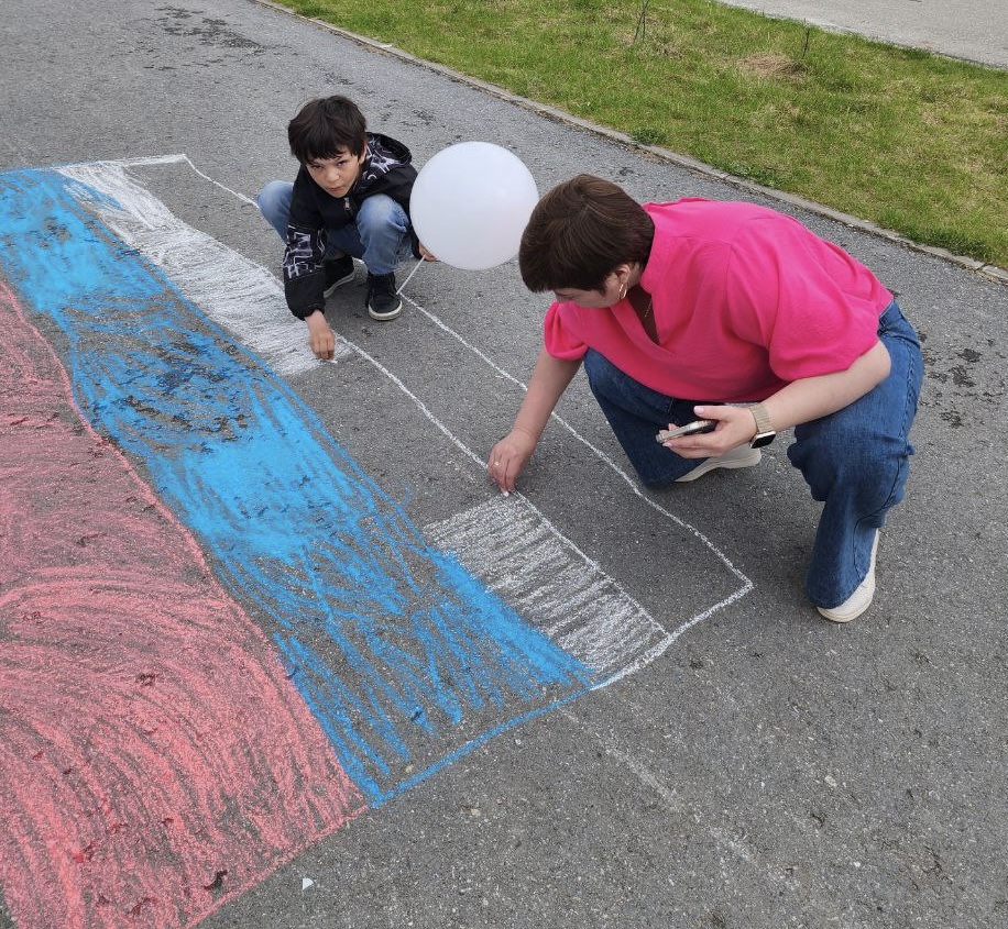 Для детей подготовили настоящий праздник творчества: конкурс рисунков мелками раскрасил асфальт яркими красками детских фантазий. Маленькие художники смело рисовали сердца, звёзды, солнца и силуэты Кремля, создавая неповторимые образы родного Отечества.