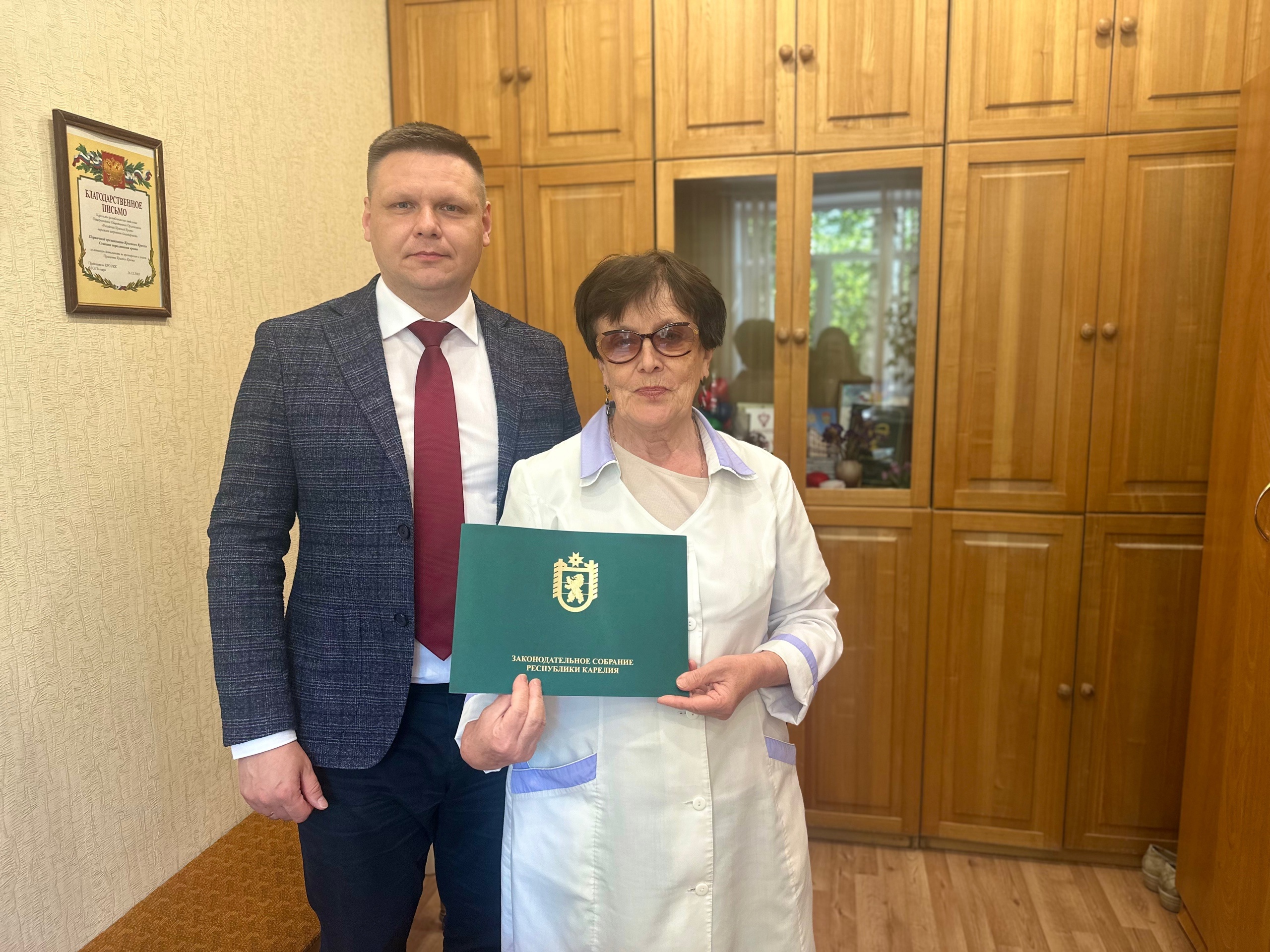 Александр Паккуев выразил искреннюю благодарность работникам и вручил главному врачу «Республиканской станции переливания крови» Пушкаревой Ирине Григорьевне благодарственное письмо от Законодательного Собрания Республики Карелия.