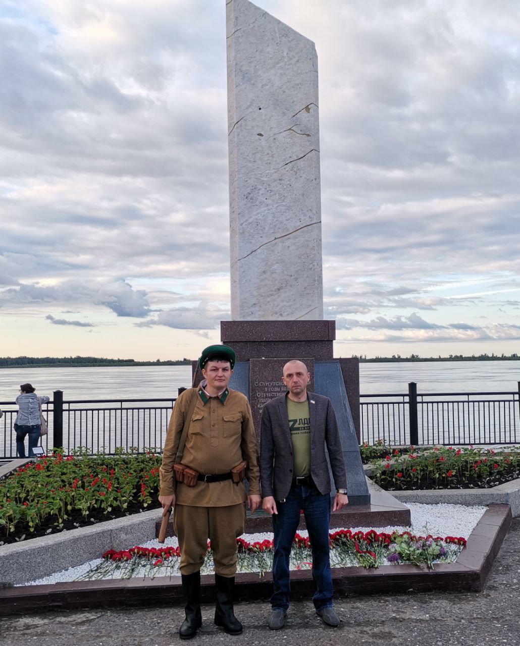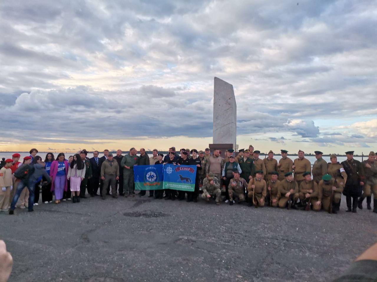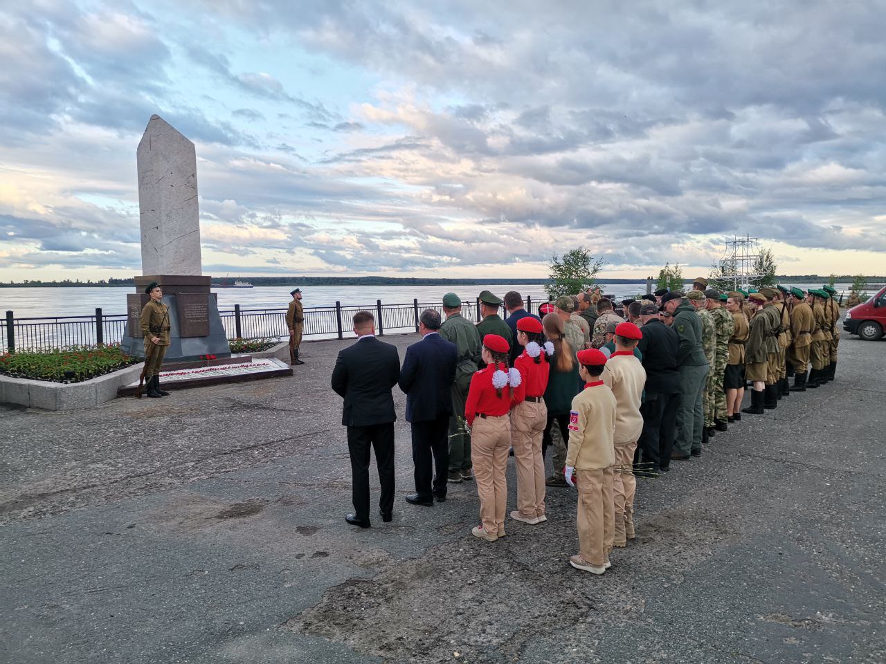 Ровно в 04:00 состоялся спуск венка на воду и возложение цветов к памятному обелиску сургутянам, ушедшим на фронт в районе речпорта.