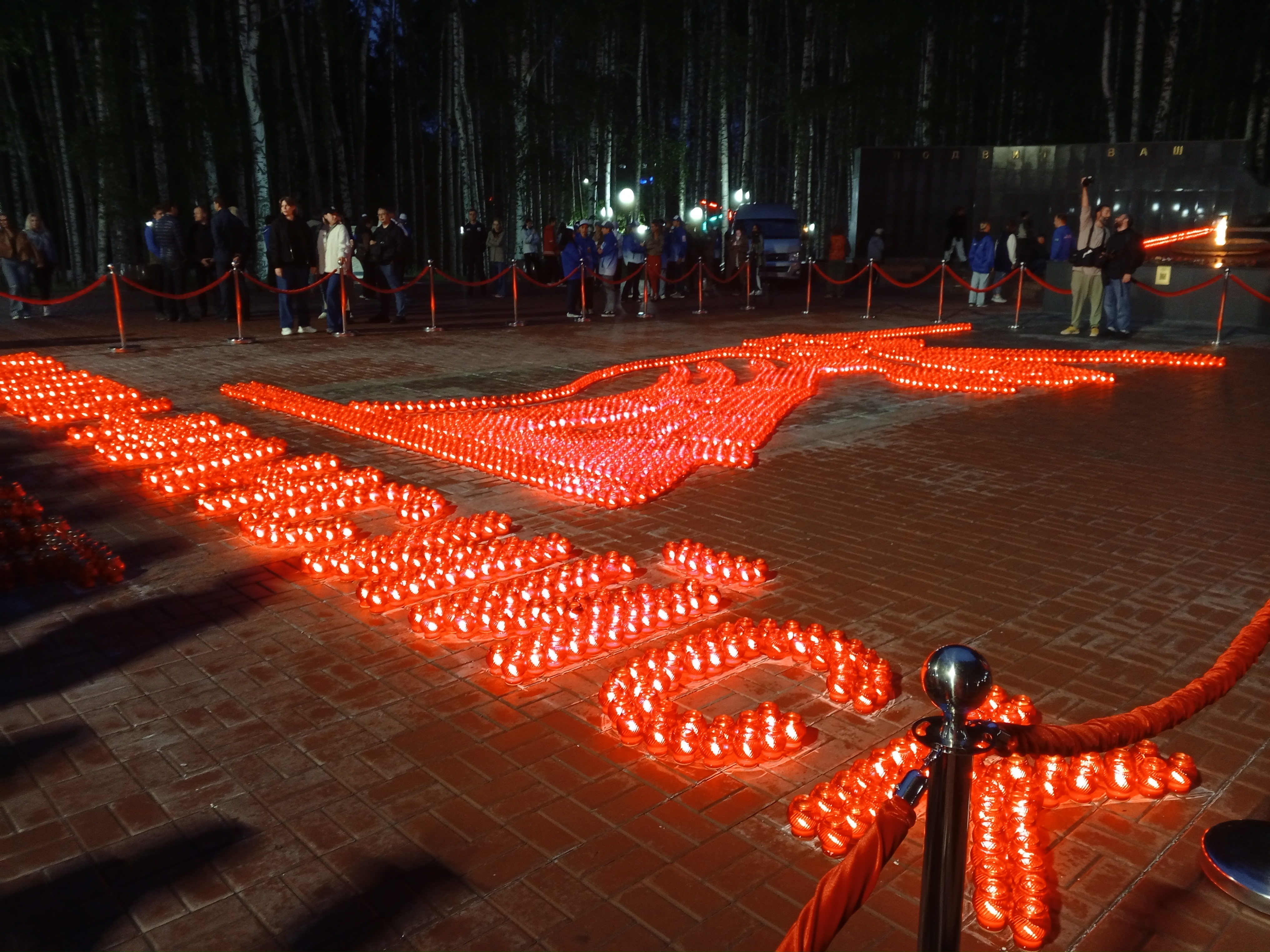 Из более чем 3 тысяч свечей была создана масштабная инсталляция «Родина-мать». Огненная картина, посвященная 80-летию Великой Победы, засияла в ночном городе, символизируя бессмертный подвиг героев Великой Отечественной войны. Представители ЛДПР в окружной столице приняли участие в памятной акции