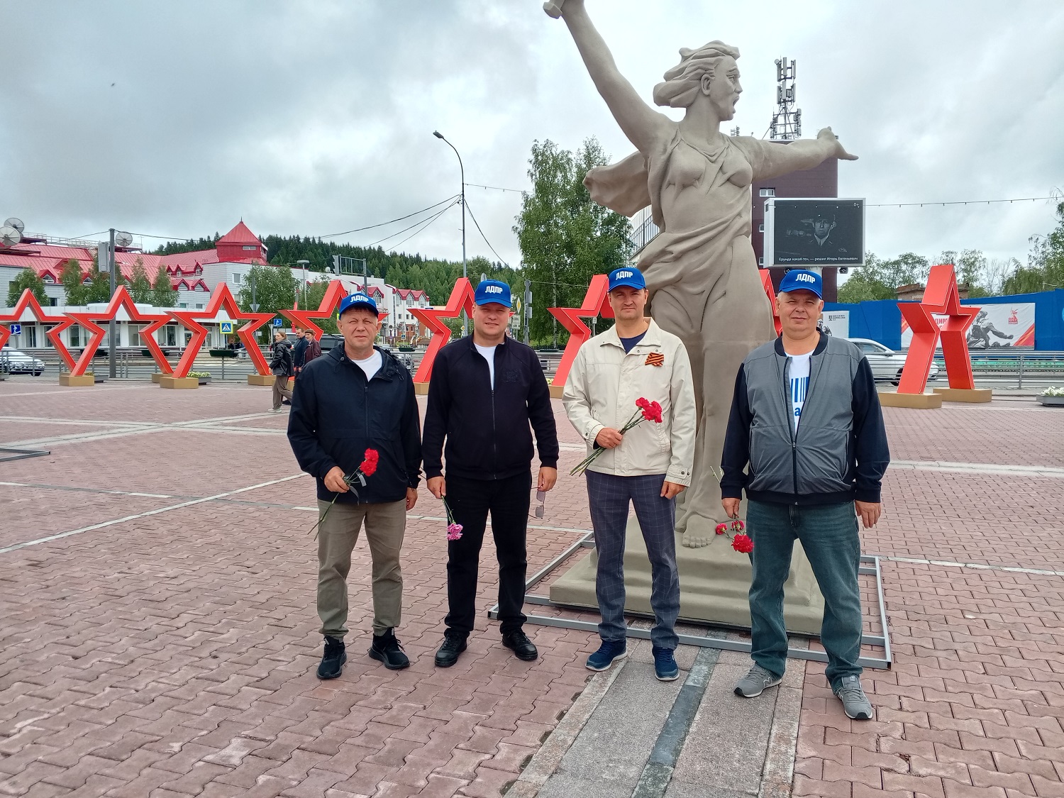 Партийцы вместе с горожанами возложили цветы к мемориалу славы и почтили минутой молчания тех, кто отдал жизнь за светлое будущее Родины.