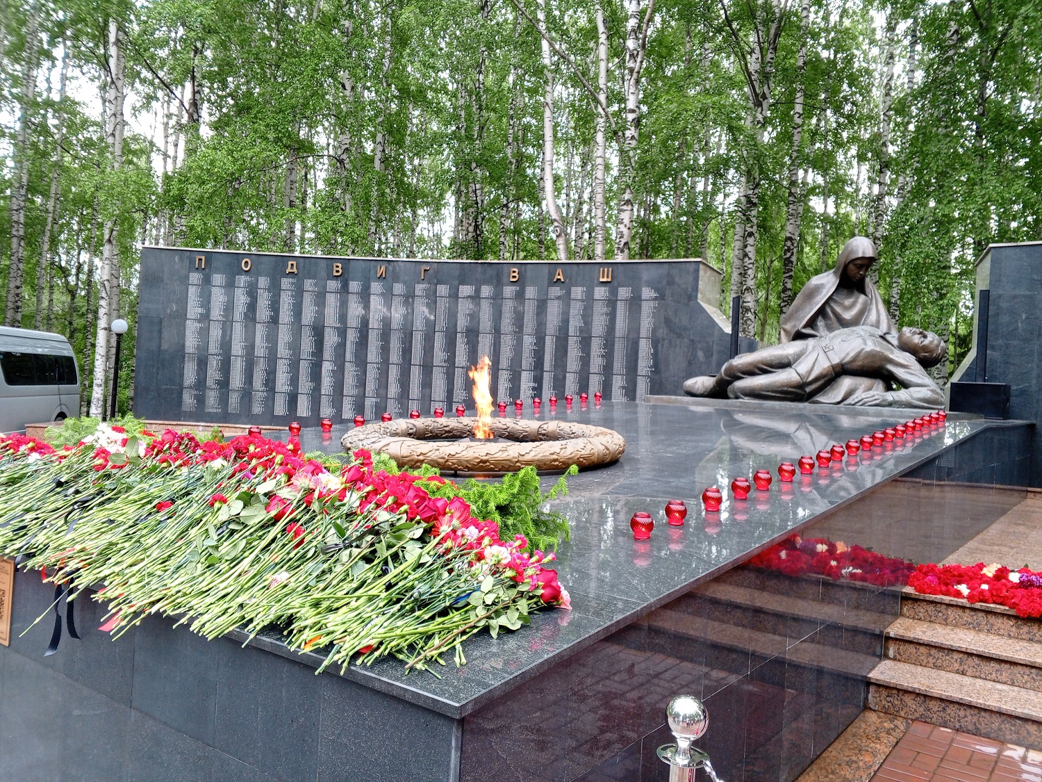 Сотни жителей окружной столицы сегодня выстроились в живую очередь, чтобы отдать дань памяти павшим