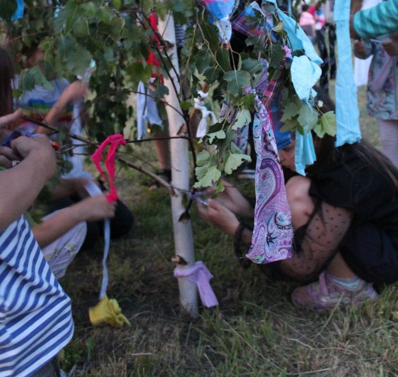Сказочные персонажи оказались совсем не страшными, они научили ребят плести венки, познакомили с народными обычаями.