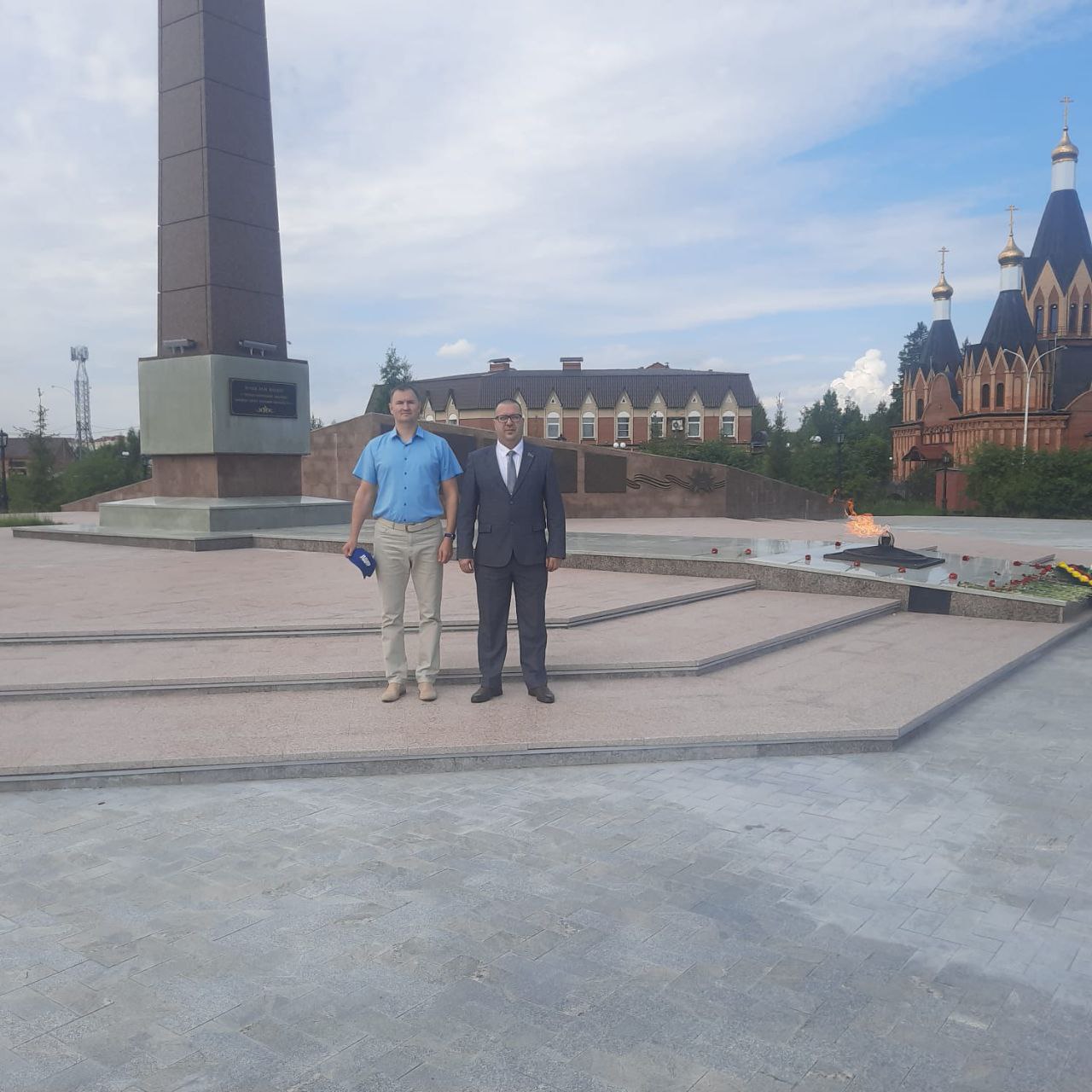 Депутат Думы Югры Виктор Сысун, его помощник Александр Тихомиров и координатор местного отделения в Урае Елена Черевач встретились с главой муниципалитета, возложили цветы к вечному огню на Мемориале Памяти и встретились с батюшкой Иоаном в Церкви Рождества Пресвятой Богородицы