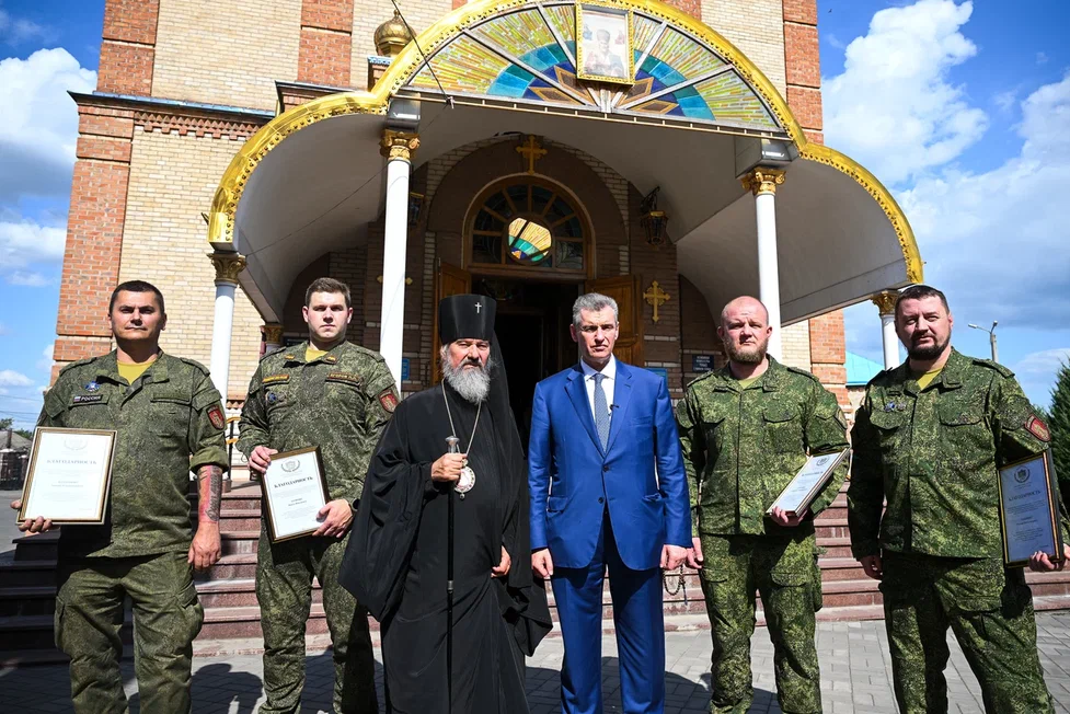 Там Леонид Слуцкий вручил благодарственные письма военнослужащим и передал от имени всей партии святыню для собора.