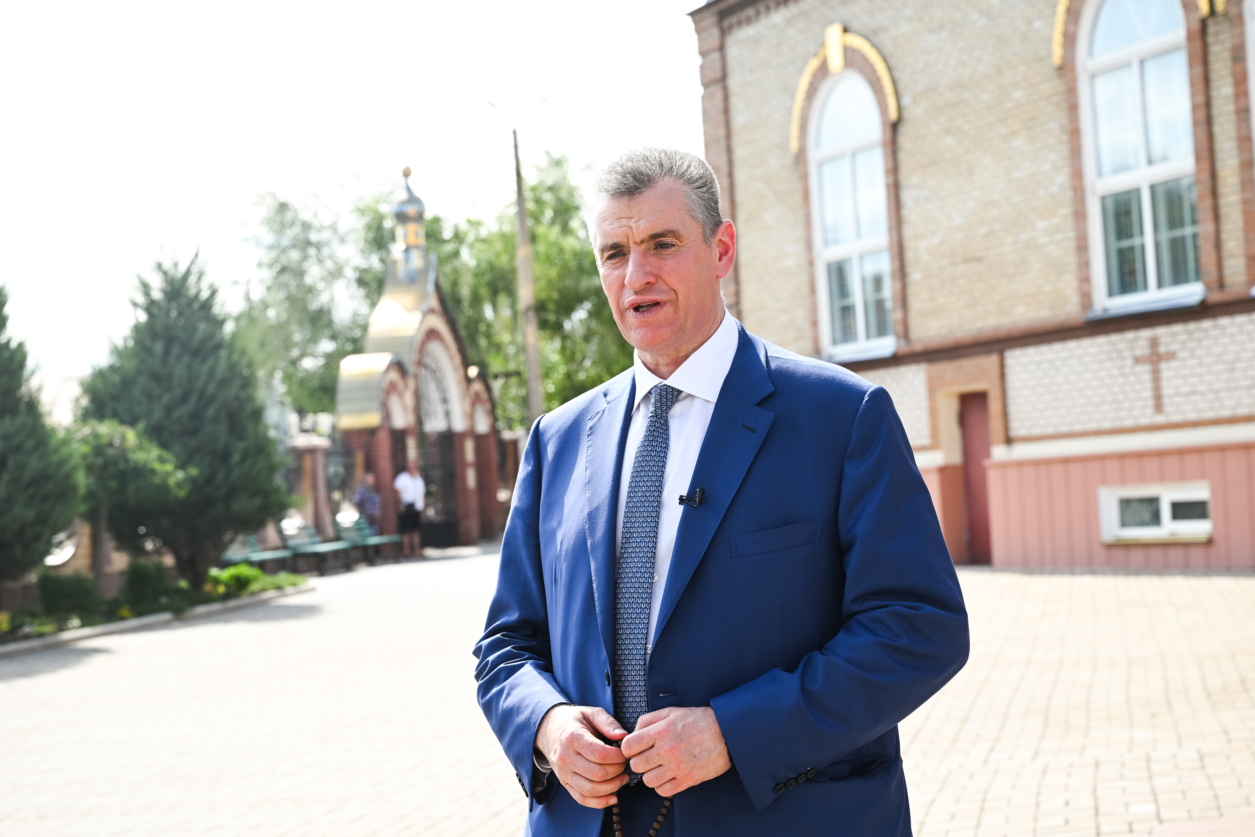 «Для меня и моих коллег большая честь быть в стенах этого храма, который чудом и с помощью Божией выстоял в борьбе с силами Тьмы, и этого города, который возродился из руин и продолжает возвращаться к мирной жизни. Мариуполь стал символом нашей предстоящей победы над злом в последней, будем надеяться, схватке с нацизмом в истории человечества» ‒ отметил Леонид Слуцкий.