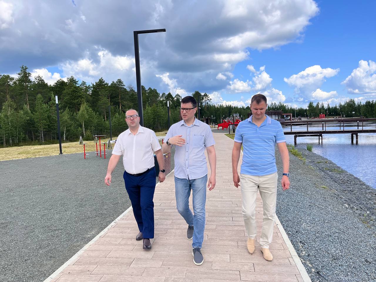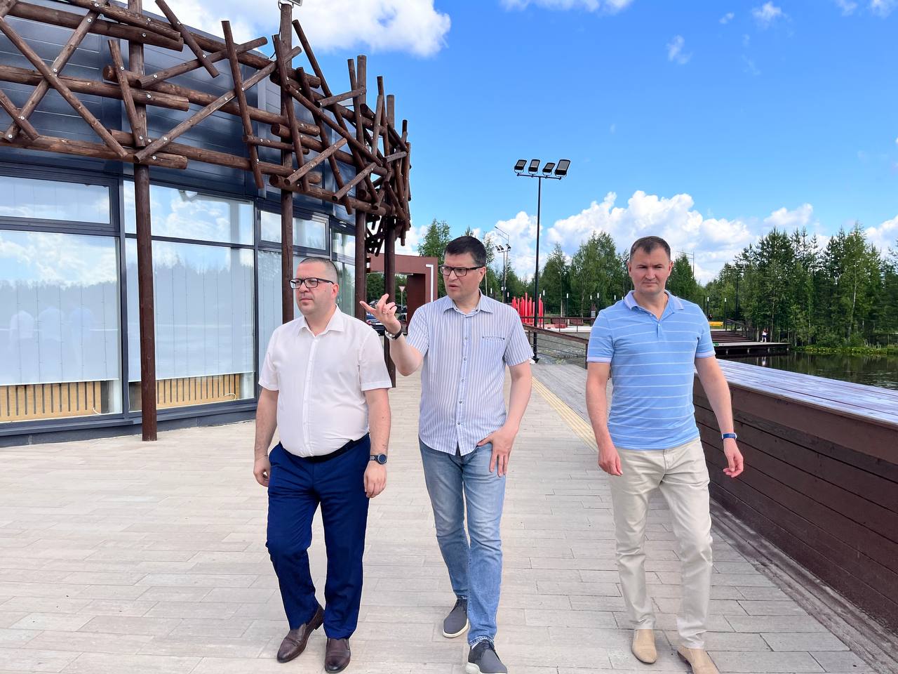 По окончании рабочей встречи вместе осмотрели Озёрный парк «Картопья». Этот проект комфортной городской среды из Югры глава муниципалитета представлял на всероссийском форуме «Малая Родина — сила России», ставший в 2021 году победителем всероссийского конкурса лучших проектов создания комфортной городской среды в малых городах и исторических поселениях. В результате инициативы советчан в августе 2023 года появилась рекреационная зона – этот озерный парк площадью 12 гектаров. Он соединил центральную часть города с микрорайоном Картопья, появилось общественное пространство для длительных прогулок: спортивные игровые зоны, зона барбекю, площадка с уличными батутами и высокими качелями, открытый лекторий, пешеходный мостик через водоём, тематические зоны, посвященные традициям и самобытности народов Севера. Отличительная особенность парка в том, что многие элементы благоустройства сделаны из природных материалов. Идею реализовали в рамках нацпроекта «Жилье и городская среда», преемником которого стал нацпроект «Инфраструктура для жизни».
