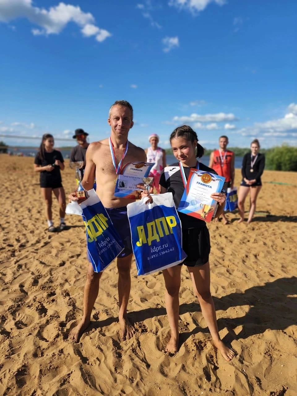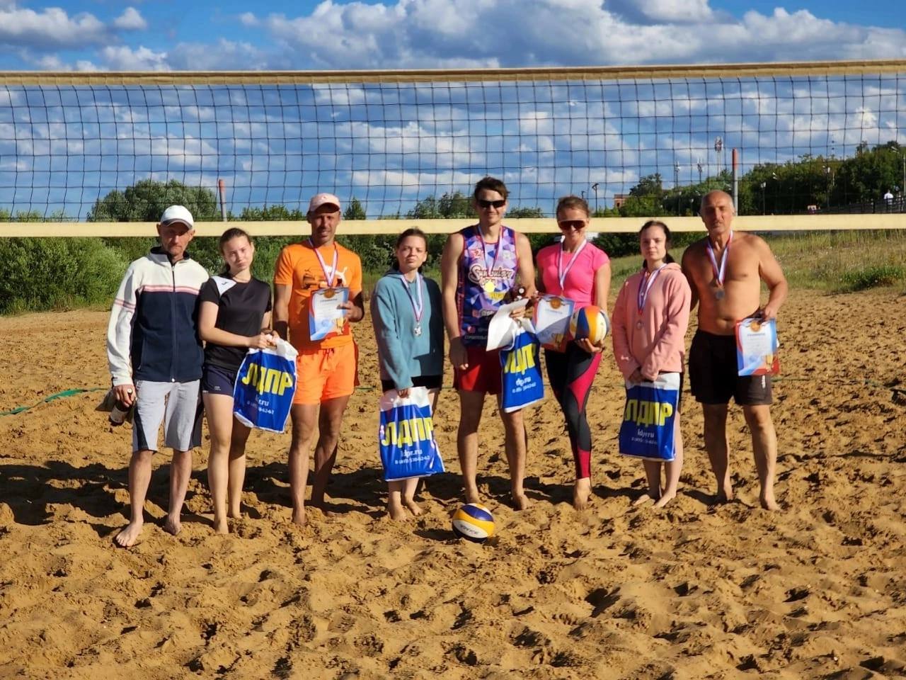 В праздничный День семьи, любви и верности на живописном берегу Оки развернулись жаркие баталии открытого чемпионата по пляжному волейболу среди микст-команд, организованного активистами Муромского местного отделения ЛДПР