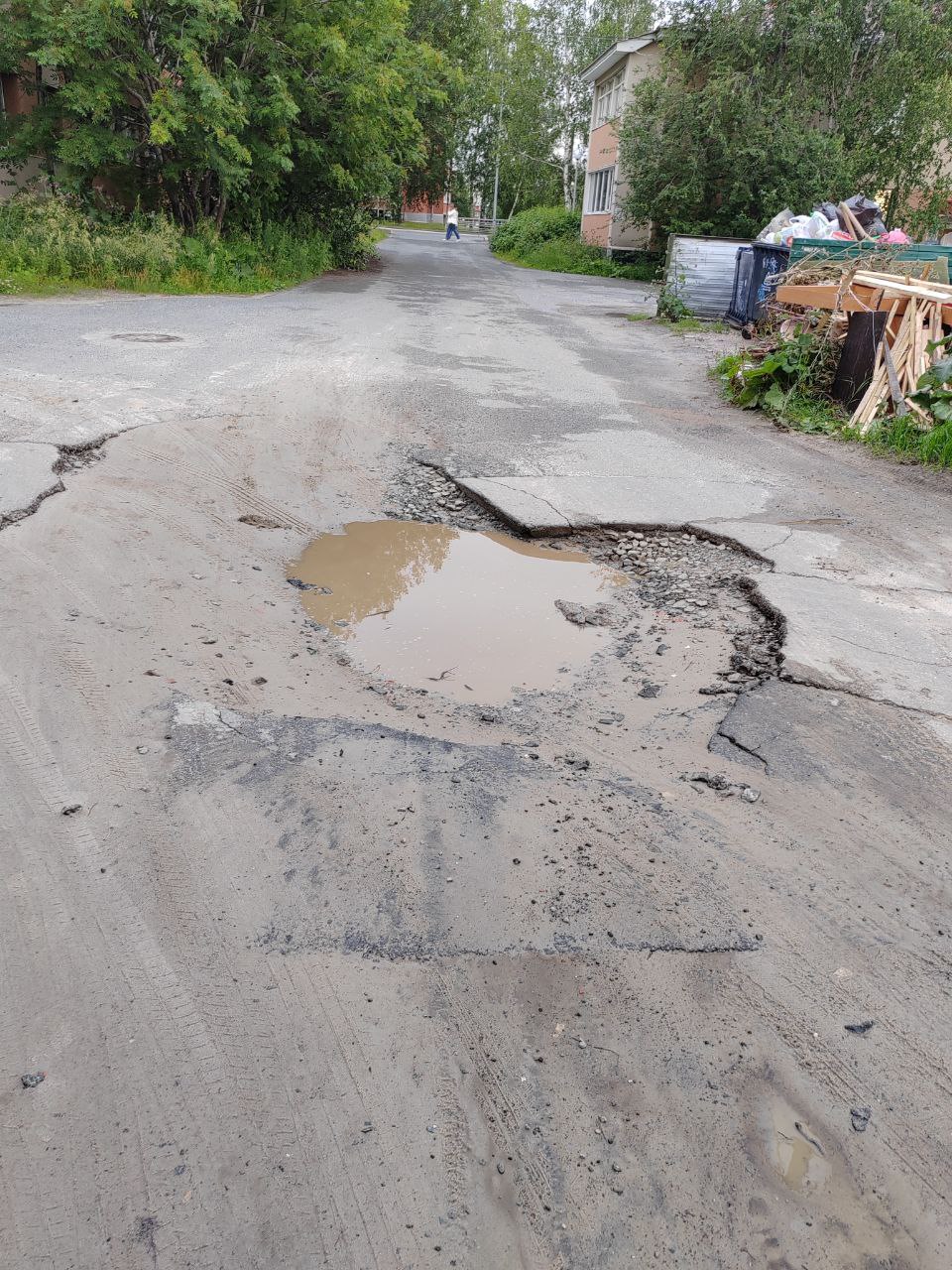 14 июля депутат Думы Ханты-Мансийска сфотографировал крупные ямы на дороге, которые мешали проезду автомобилей, и это находилось в самом центре города, в окружной столице, на проезде, соединяющем две центральные улицы — Мира и Ленина.