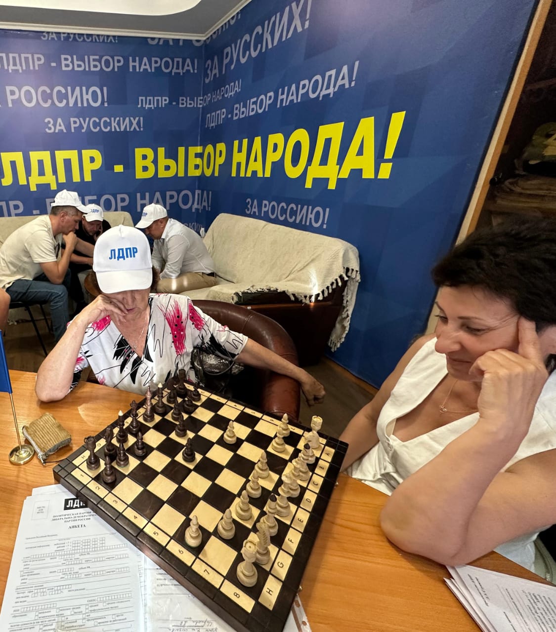 А Ирина Рыков выиграла блиц-турнир с пресс-секретарём за пару минут, взяв пешкой ферзя у неопытного противника.