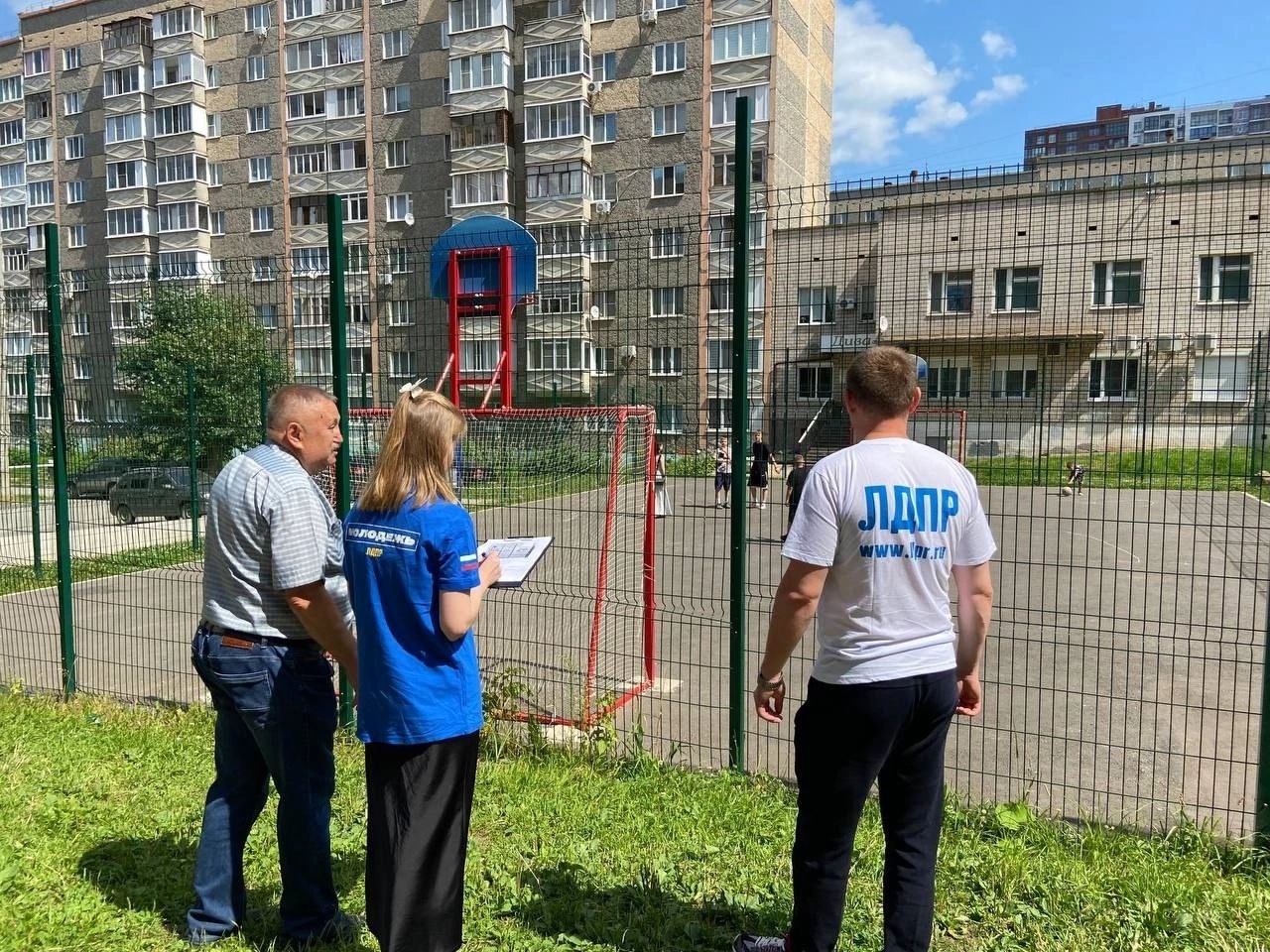 Серьезного ремонта не требуется. Нужно освежить краску, выровнять детскую площадку, на качелях заменить карабины и сделать термозащиту для рук. Обновить сетку на футбольных воротах. Жители просят сделать крытую песочницу. Вопрос принят в работу.