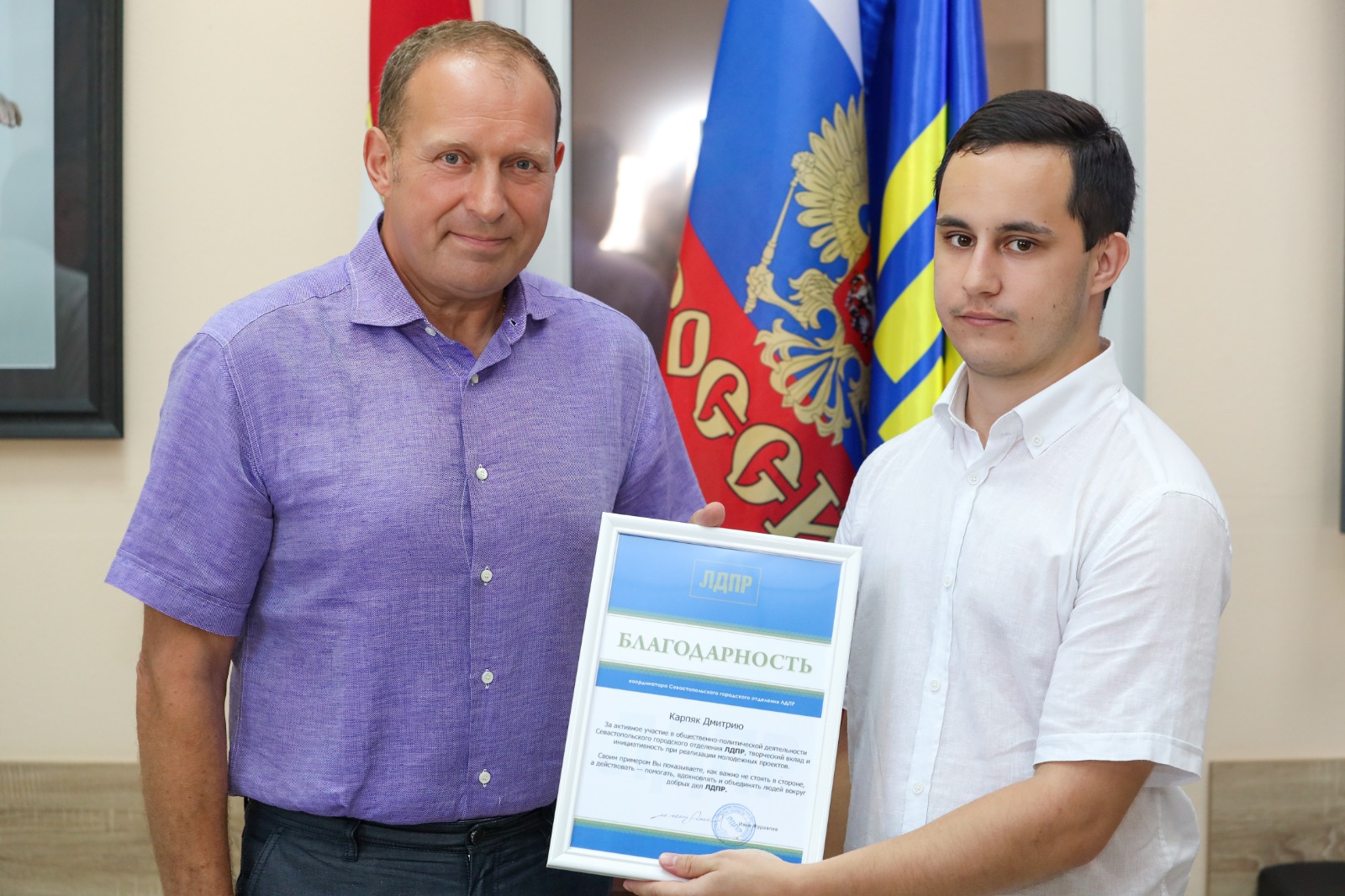 В офисе Севастопольского регионального отделения ЛДПР состоялась торжественная церемония награждения благодарственными письмами наиболее активных членов молодежной организации