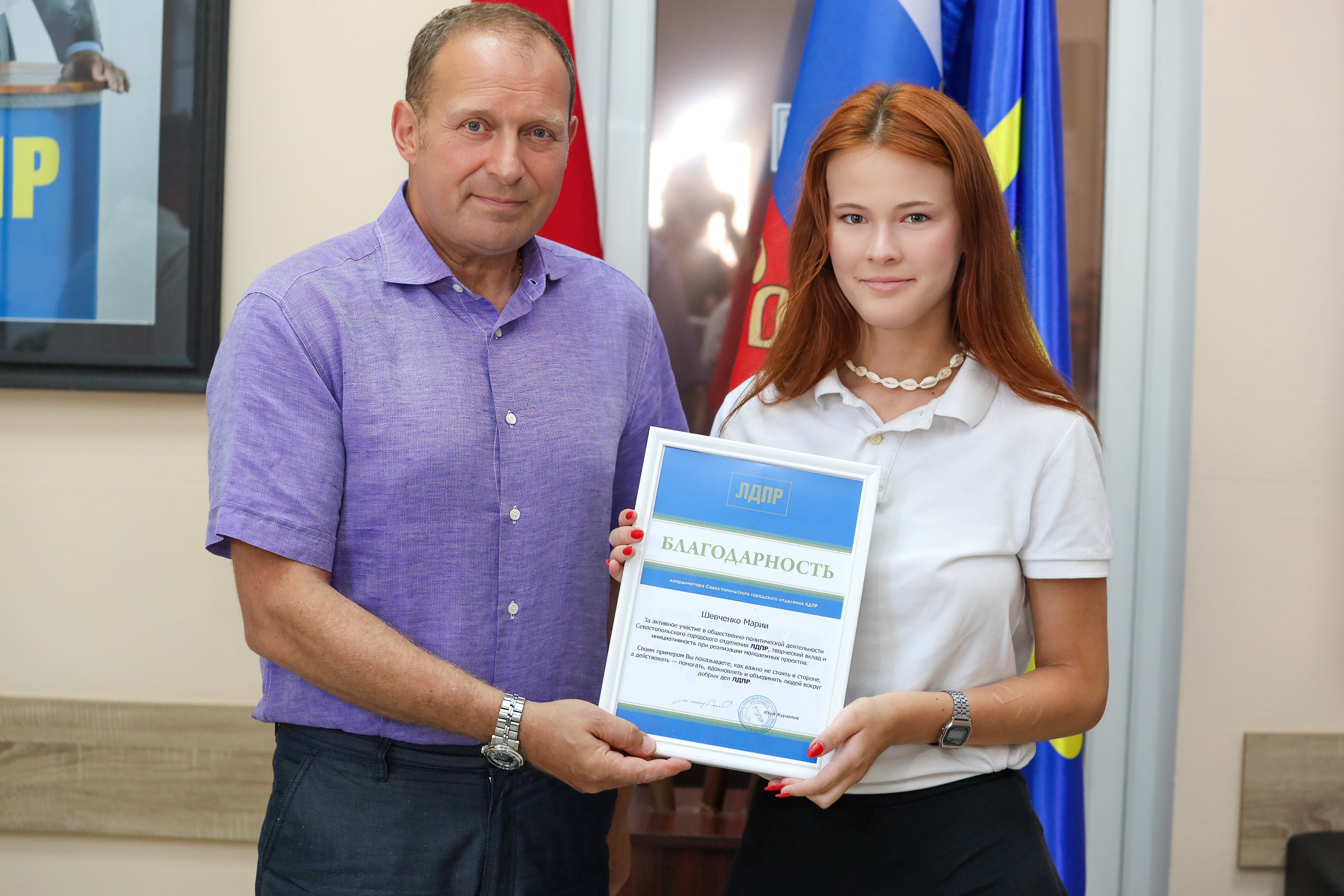 В офисе Севастопольского регионального отделения ЛДПР состоялась торжественная церемония награждения благодарственными письмами наиболее активных членов молодежной организации