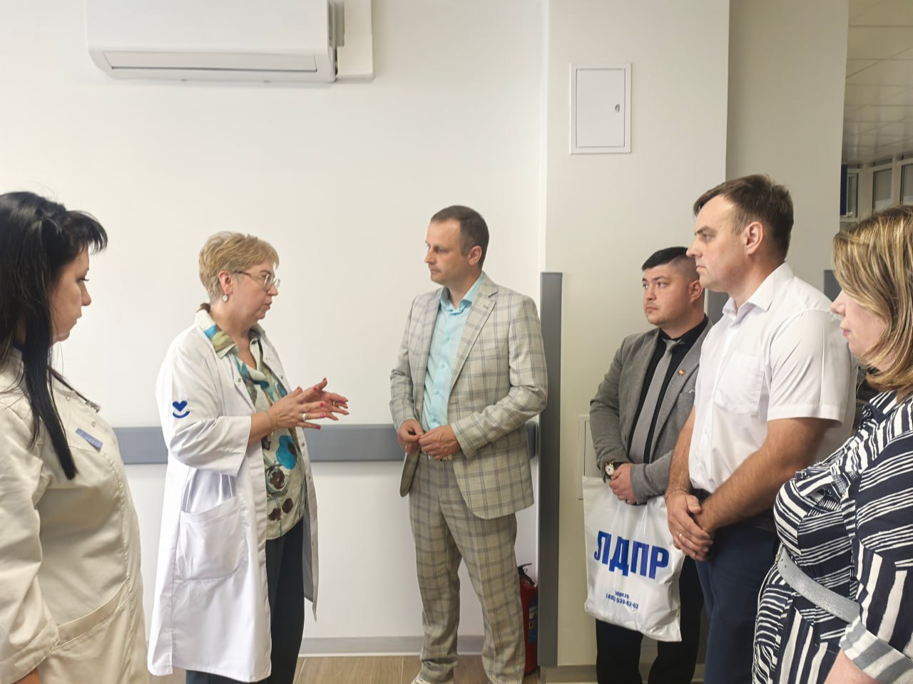 Депутат Госдумы Сергей Леонов вместе с главой ЛДПР на Смоленщине, депутатом Михаилом Ковалевым и его помощником Кареном Айрапетовым посетили поликлинику №8. Главврач Смоленской городской поликлиники Елена Пчелова и заведующая поликлиникой № 8 Марина Митюшина рассказали партийцам о работе медучреждения.