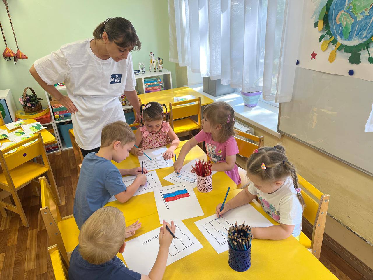 Во время занятия юные воспитанники узнали о значении и истории российского триколора и нарисовали флаг РФ. Детям объясняли, что белый цвет – чистоты и порядка и символизирует свободу и независимость, синий — веру и благородство, а красный — государственность и мощь России. На занятии каждый показал свой флаг и рассказал, где видел триколор, на каких зданиях в городе встречали флаг России. Активисты рассказали, что у символа государства есть свой личный день. День государственного флага — это общенациональный праздник, который отмечается по всей стране.