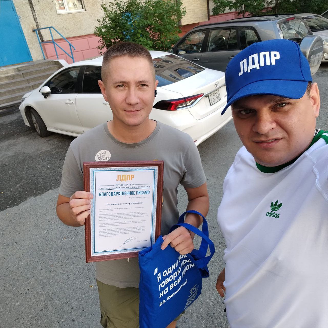 Денис Байрамов, представитель ЛДПР в Сургуте, от имени Председателя партии Леонида Слуцкого вручил благодарственные письма лучшим волонтёрам, проявившим неравнодушие, доброту и сердечность, помогая нуждающимся жителям Сургута, участникам СВО и членам их семей