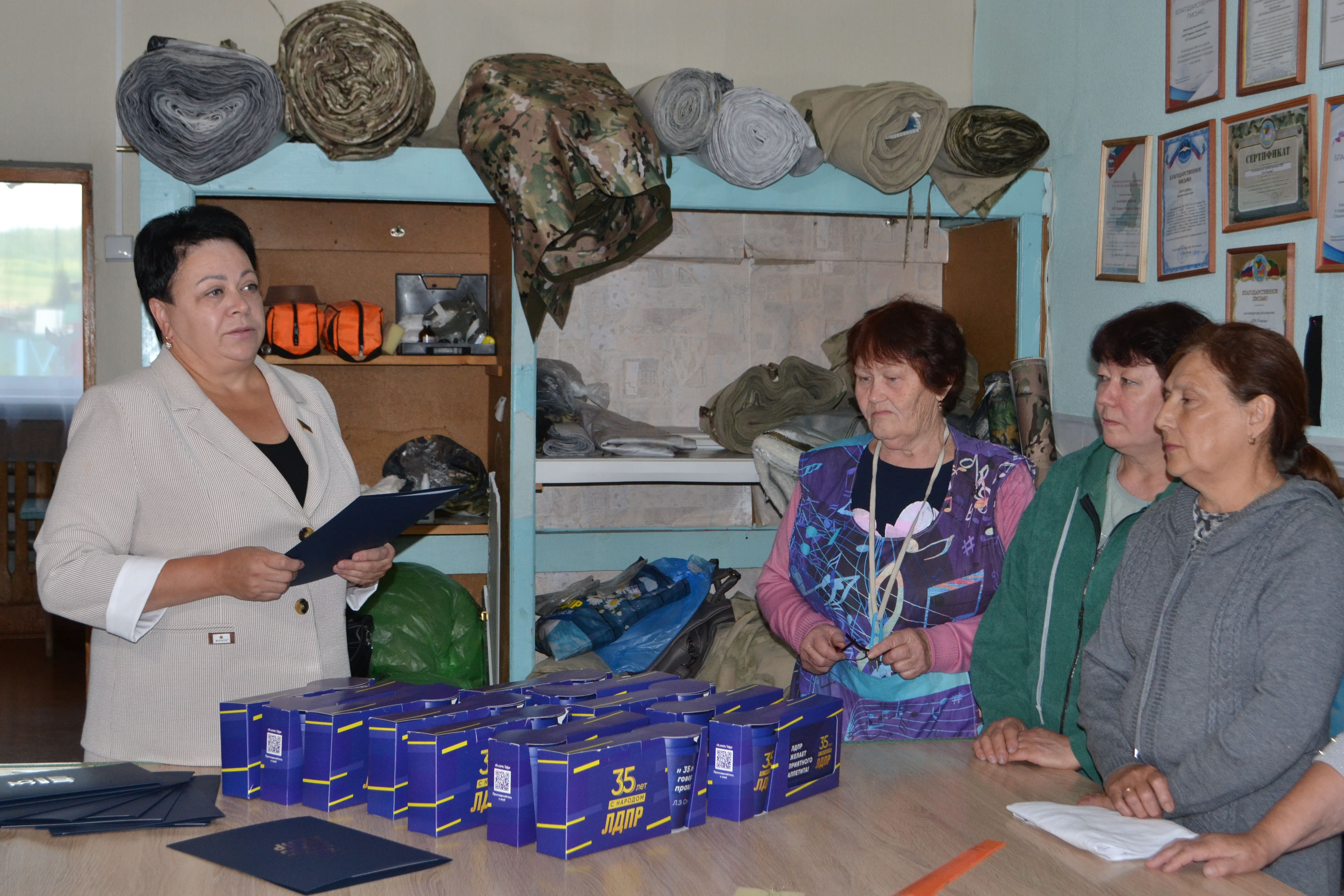 Председатель ЛДПР Леонид Слуцкий поблагодарил забайкальских мастериц-волонтёров центра «ZOV Родины» из посёлка Новокручининский за помощь бойцам СВО. Благодарственные письма от Председателя вручила координатор Забайкальского регионального отделения ЛДПР Светлана Илюхина.