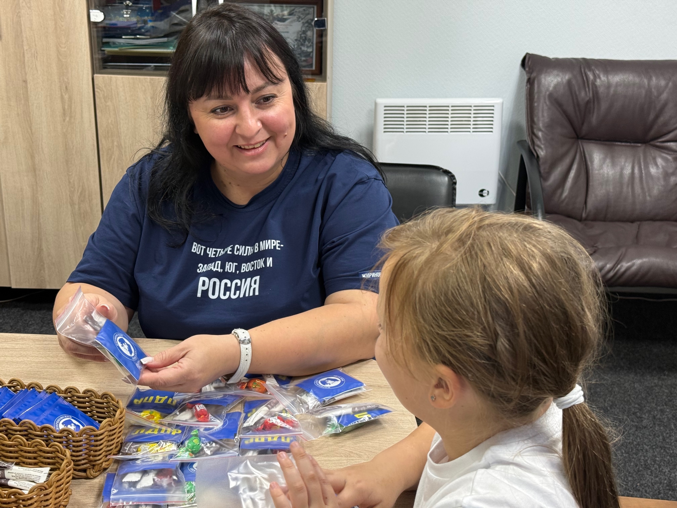 "Депутат Калтанского Горсовета от ЛДПР Анастасия Акбаралиева вместе с детьми собрала для наших бойцов индивидуальные чайные наборы