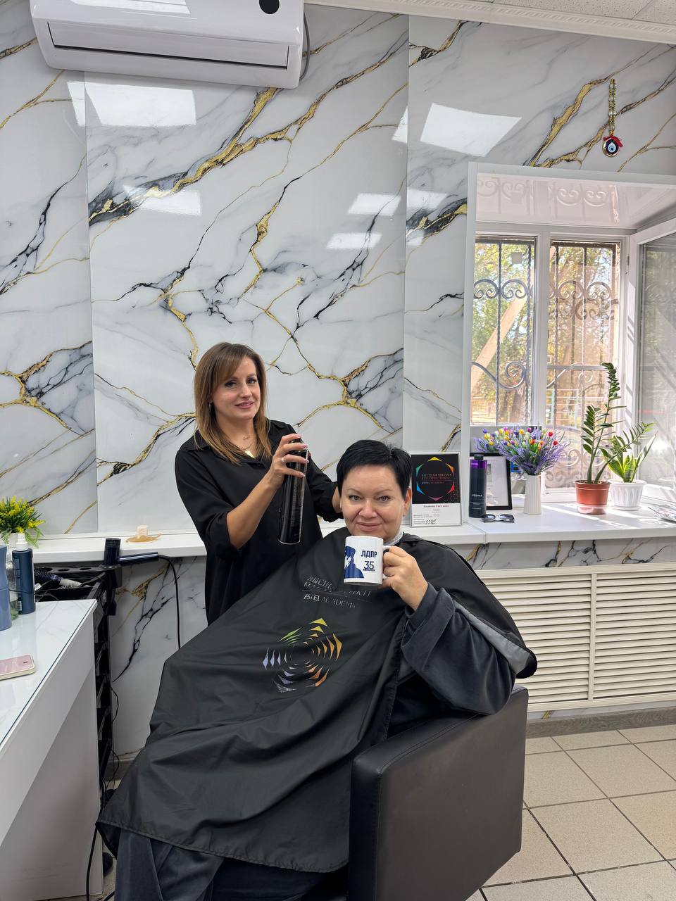 В ее руках ножницы и лак утром и грабли — вечером. Партийцы поздравили коллегу с днем парикмахера