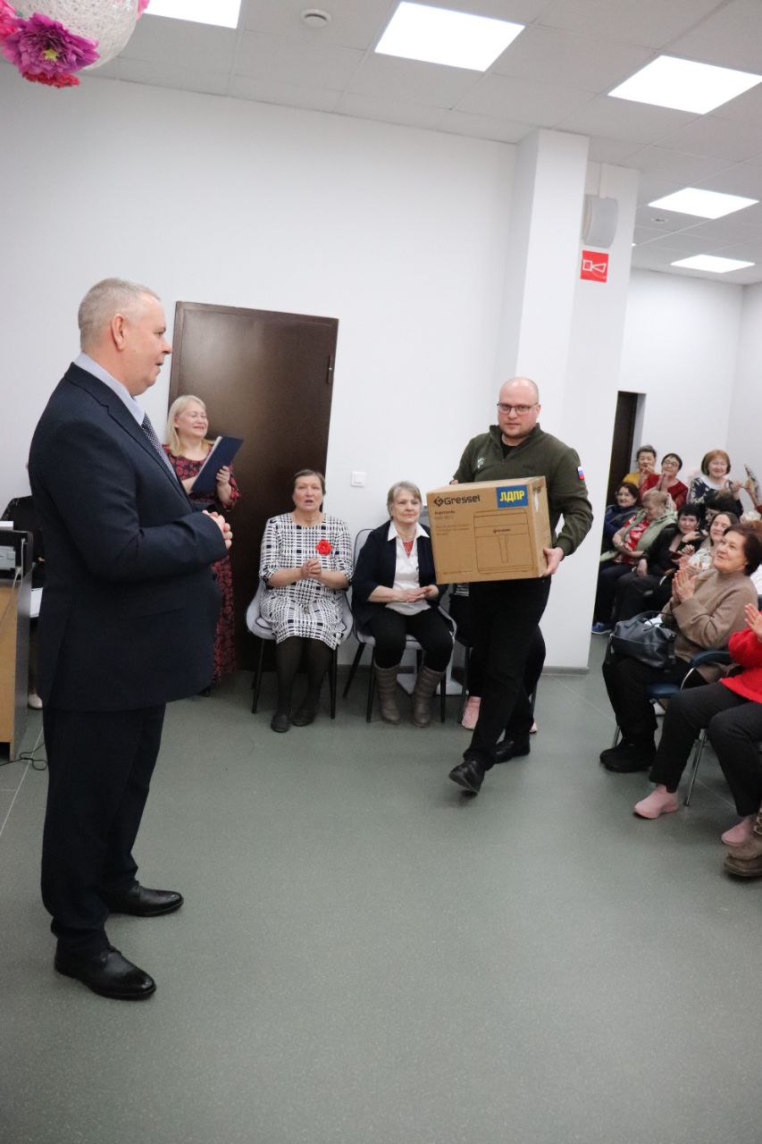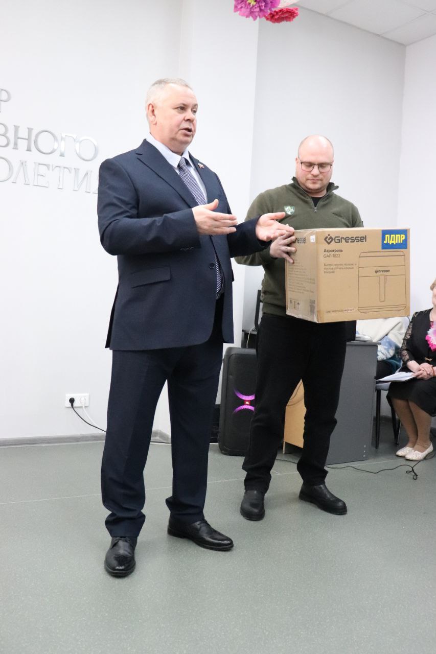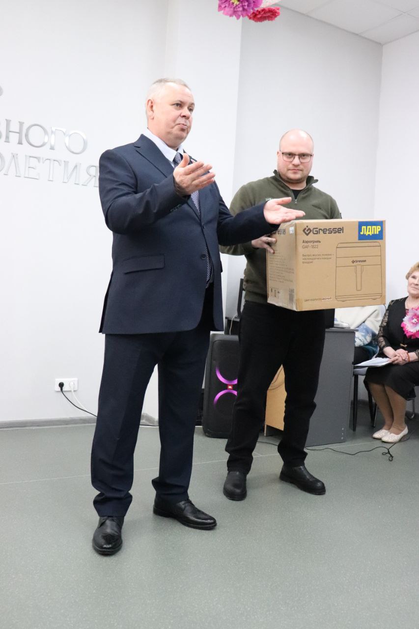 В знак поддержки и признания, в честь праздника, от партии по запросу женщин был вручён в подарок аэрогриль, который обязательно пригодится в кулинарной мастерской этого Центра.