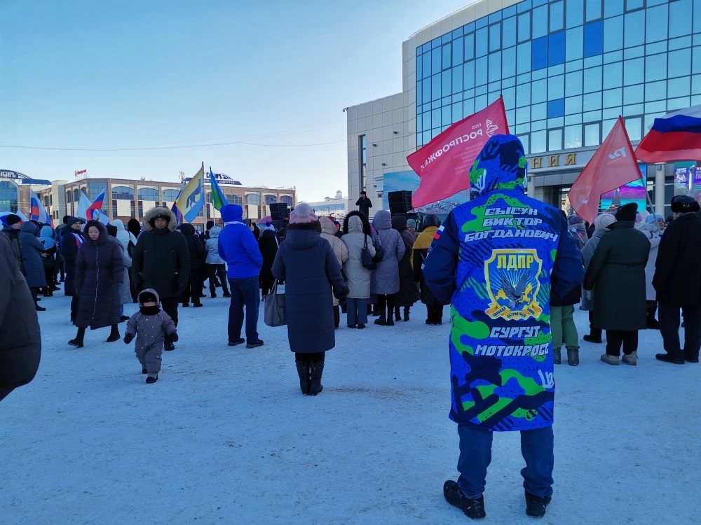 Торжественное мероприятие прошло 18 марта на площади перед Сургутской филармонией. Начало программы — в 16:00. Для жителей выступили творческие коллективы Сургута, прозвучали патриотические песни и тематические композиции. С приветственными словами к участникам обратились представители администрации города, Думы Сургута и общественных организаций.