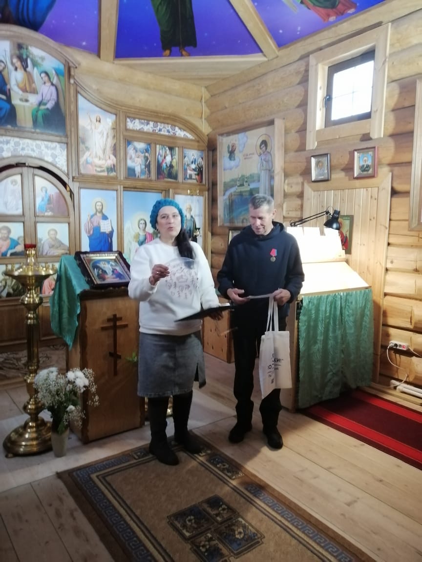 В канун православного праздника — дня иконы Казанской Божией Матери, активистка Пинежского местного отделения Архангельского регионального отделения ЛДПР Богданова Антонина совершила значимый патриотический жест. В храме села, где проходило богослужение, она вручила юбилейную медаль «95 лет ВДВ» прихожанину — гвардии сержанту ВДВ в запасе Алексею Мерзлому.