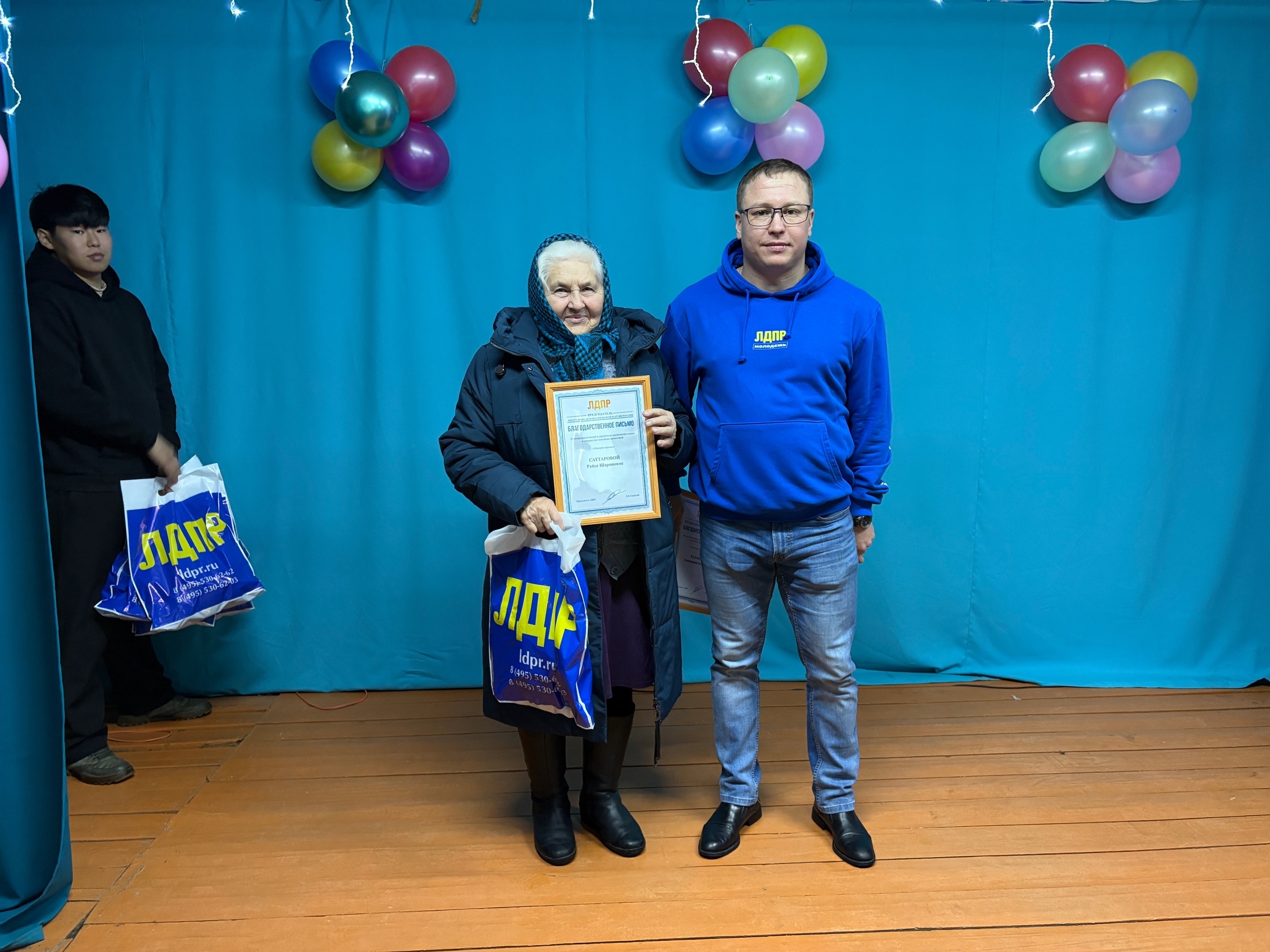 В преддверии Дня матери активисты Бурятского РО ЛДПР посетили праздничный концерт в селе Старый Онохой. В рамках мероприятия партийцы вручили матерям и бабушкам села символические подарки и благодарственные письма от имени партии.
