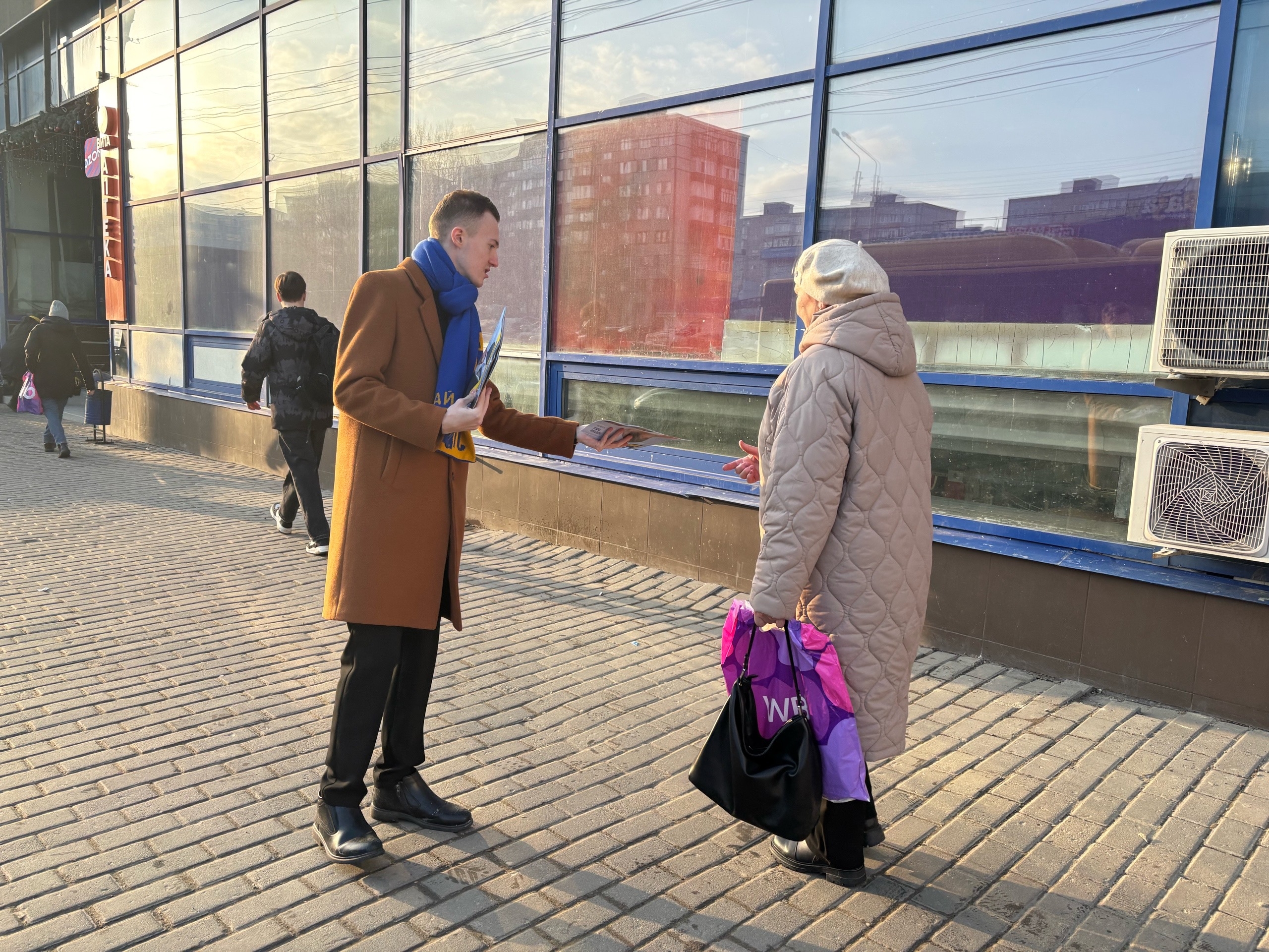 Активисты ЛДПР провели встречу с горожанами у ТЦ «Космос Сити»