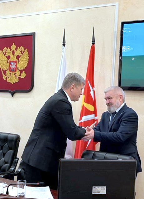 Присутствовавший на заседании руководитель фракции ЛДПР Тульской облдумы, депутат в региональном парламенте от Венёва Александр Балберов поздравил Андрея Шубчинского с избранием на должность.
