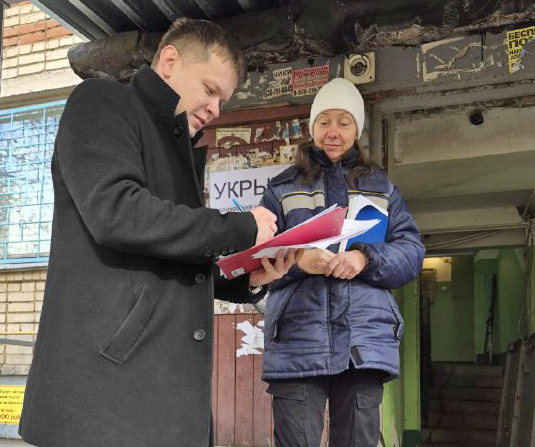 Депутат ЛДПР Тульской городской думы Александр Маринков подписал акт выполненных работ по капитальному ремонту входной лестницы в подъезде