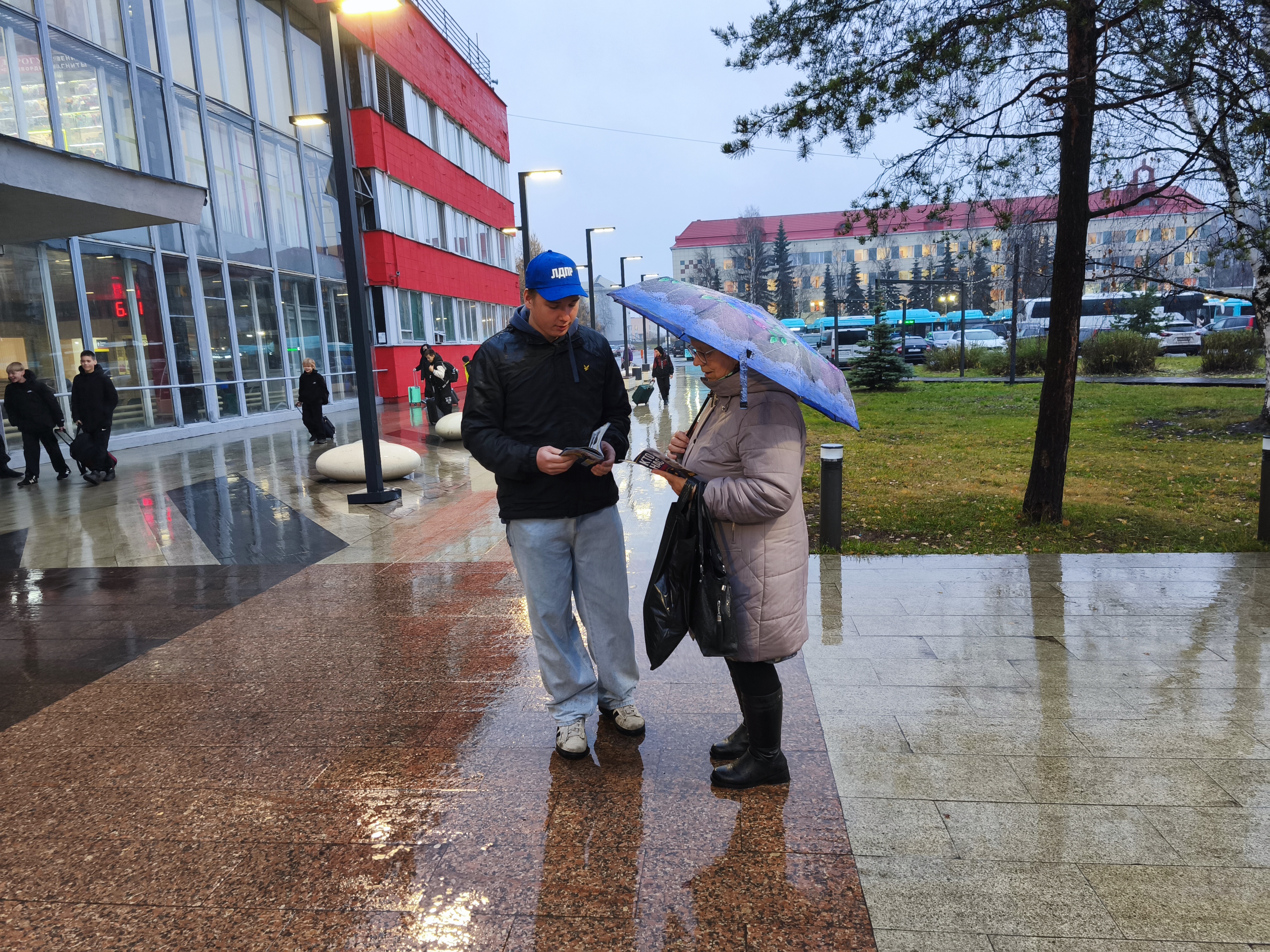 В этот раз ребята выбрали места, где сегодня особенно много людей — у офиса Социального фонда и крупных почтовых отделений. Именно 6 ноября — один из основных дней выдачи пенсий и социальных пособий, и активисты решили воспользоваться возможностью напрямую пообщаться с жителями.
