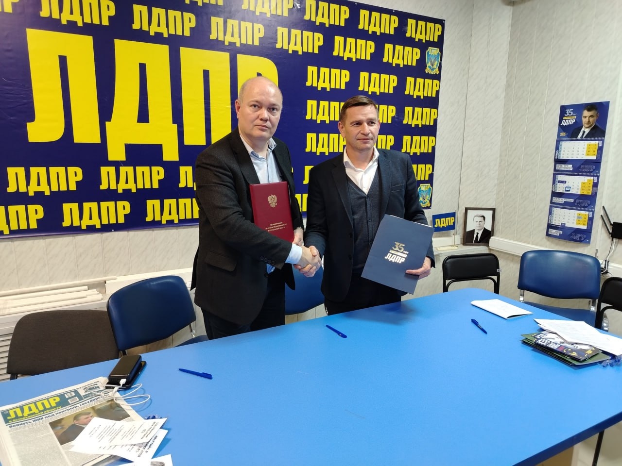 В офисе Астраханского регионального отделения ЛДПР координатор партии Тимофей Щербаков и региональный Уполномоченный по защите прав предпринимателей Александр Соловьев заключили соглашение о сотрудничестве. Подписанный документ, уверены стороны, поможет улучшить инвестиционный климат в области.