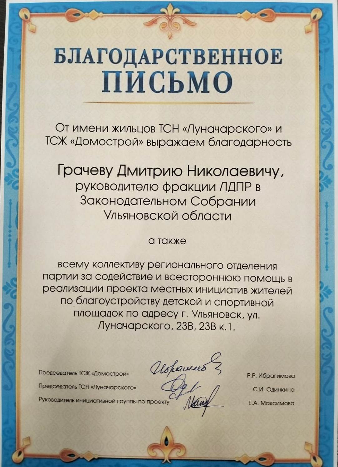 «Совместная работа депутатов ЛДПР – ещё один благоустроенный двор, где дети могут заниматься любимыми играми и проводить свободное время. Нас искренне порадовало получение благодарственного письма от жителей и тёплых слов в адрес регионального отделения ЛДПР. Это признание подтверждает, что наша работа приносит реальную пользу людям», — подчеркнул Дмитрий Грачев.