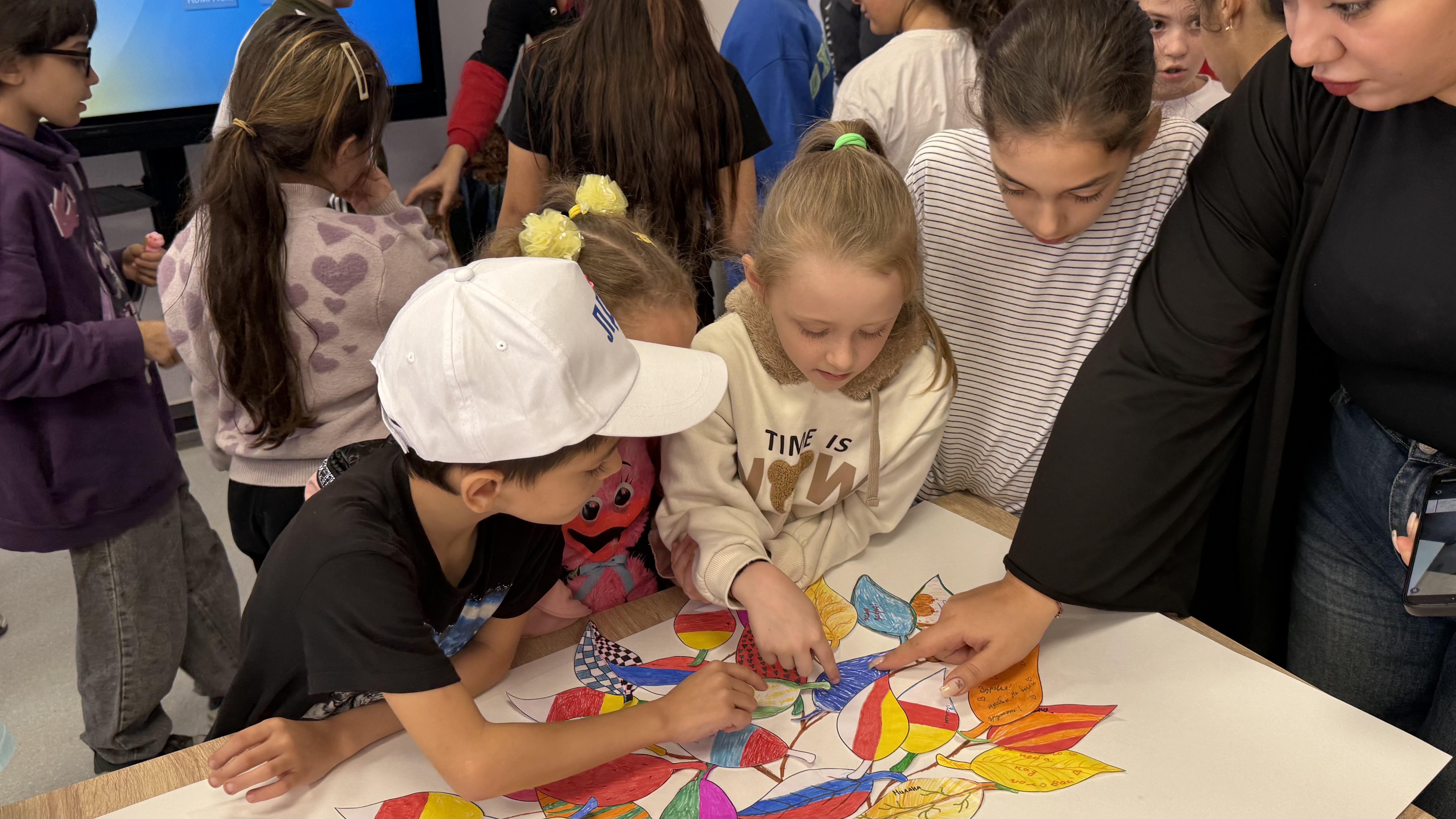 В ходе акции каждый ребенок получил возможность творчески выразить свои мысли о дружбе и единстве, украсив бумажный листочек. Все эти индивидуальные листочки были собраны в одно яркое и красочное «Дерево дружбы народов», ставшее зримым воплощением идеи общности и взаимопонимания.