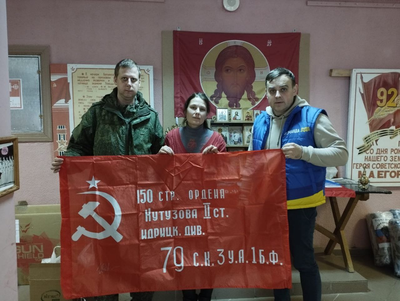 Руководитель волонтерской группы «Катюша» Олеся Зуйкова подготовила для передачи бойцам копию Знамени Победы, послания и фотографию Михаила Егорова, а также письма и посылки от воспитанников детского сада «Алёнушка». Вся собранная помощь будет доставлена защитникам в ходе следующей поездки гуманитарного каравана ЛДПР.