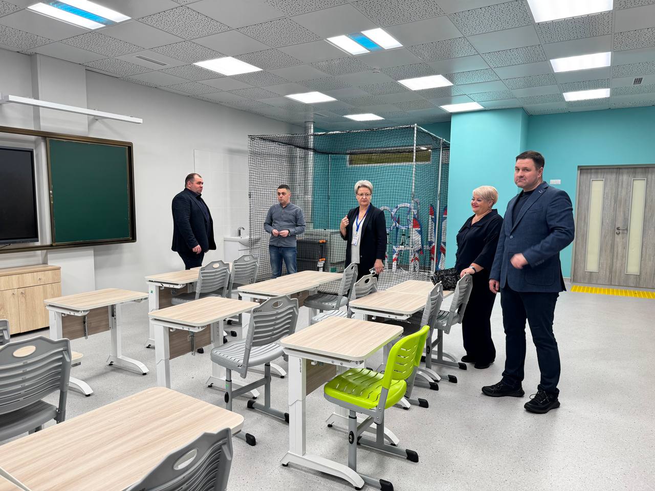 Андрей Кузнецов, Денис Садовников вместе с руководителем новоуренгойского отделения ЛДПР Любовью Поздеевой посетили новый современный учебный корпус, который был официально открыт в 2024 году. Вместе с директором образовательного учреждения Светланой Николаевной Боцян они ознакомились с условиями обучения, предназначенными для 800 учащихся начальных, средних и старших классов, размещённых в просторных учебных зонах.