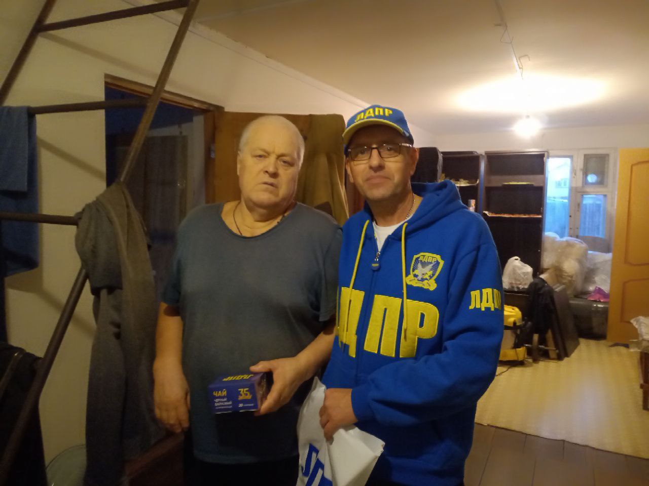 А в Нижневартовске активист местного отделения ЛДПР Виталий Гуринчук поздравил замечательного соседа — отца двух сыновей, ветерана МВД Анатолия Ивановича Дорофеева — с Днём отца и вручил небольшие подарки с символикой ЛДПР в знак уважения и поддержки.