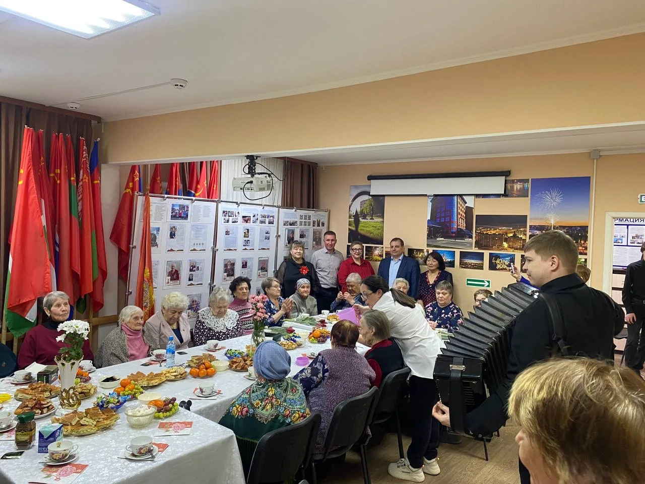 Партиец посетил Совет ветеранов, где за праздничным чаем и сладостями собрались труженики тыла, узники войны, вдовы ветеранов Великой Отечественной войны, ветераны труда. В душевной обстановке участники встречи вспоминали военные и послевоенные годы, пели песни и частушки под гармонь, говорили о многом: о трудных днях освоения Севера, о сохранении исторической памяти и воспитании молодёжи в духе уважения к людям старшего поколения и их трудовому подвигу.