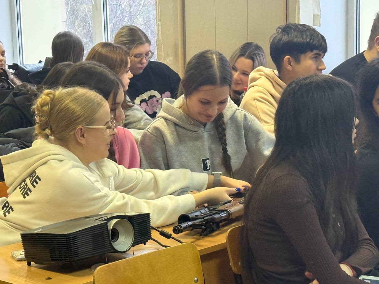 На встрече с ветераном СВО и депутатом Совета депутатов от ЛДПР Раменского муниципального округа Николаем Блескиным, а также с активистами молодёжи ЛДПР и участниками военно-патриотического клуба, студенты узнали о том, как наши бойцы куют победу на передовой.