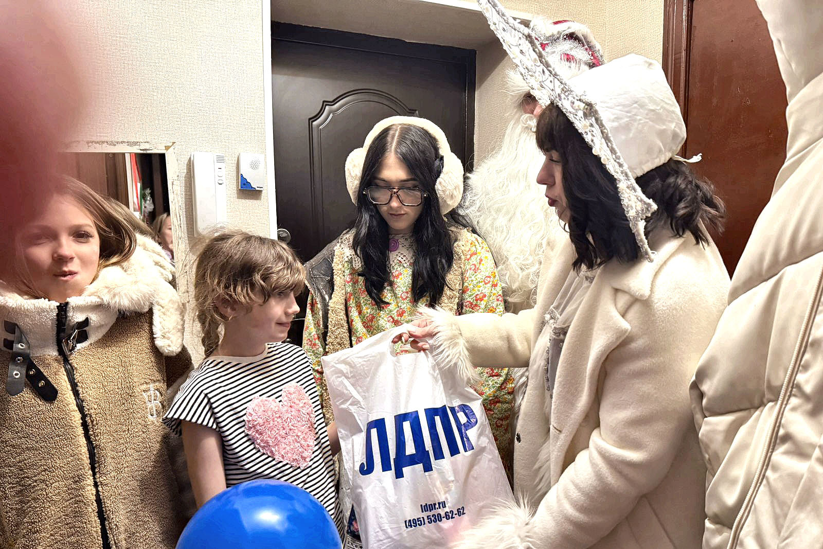 Поздравления сопровождались вручением сувениров от ЛДПР. Для детей это был момент радости, для взрослых — знак внимания, исходящий не от абстрактных структур, а от живых людей. В этом есть своя политическая логика: партия не прячется в кабинетах, а выходит в город в тот момент, когда он наиболее открыт и уязвим одновременно.